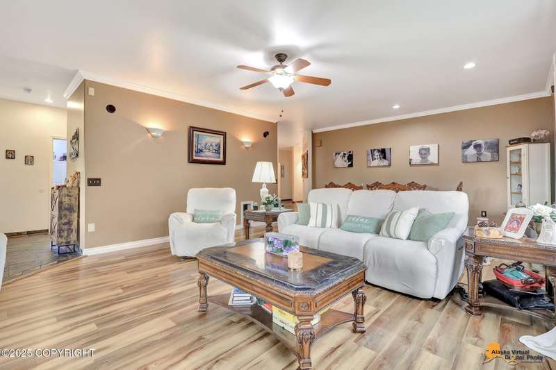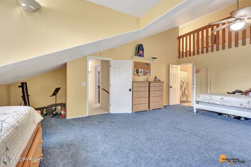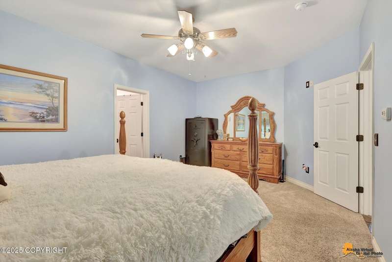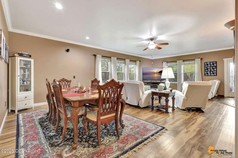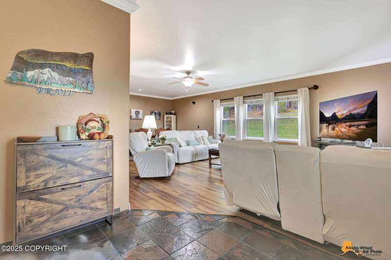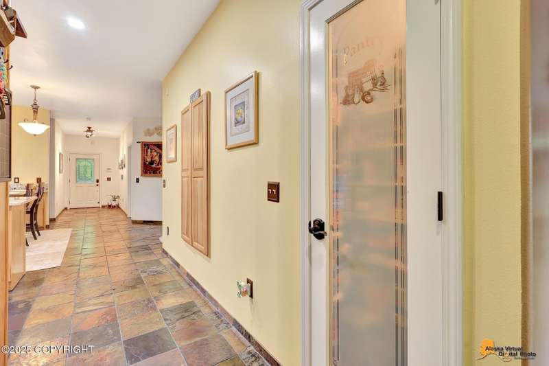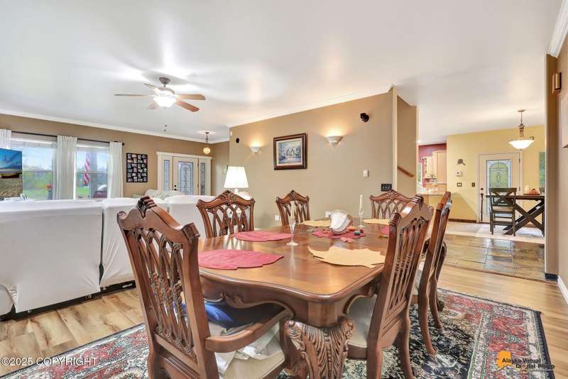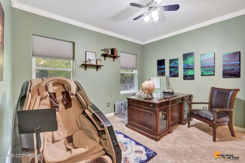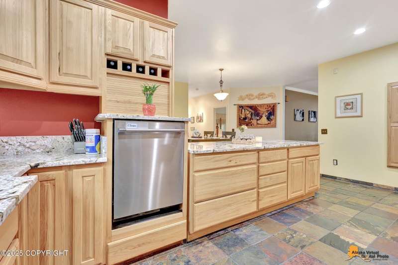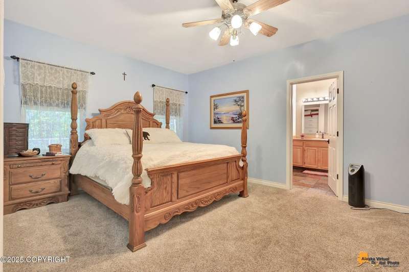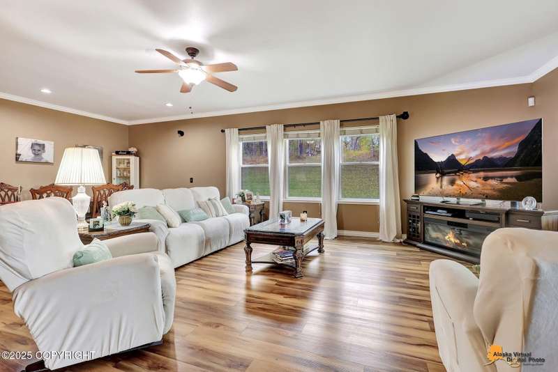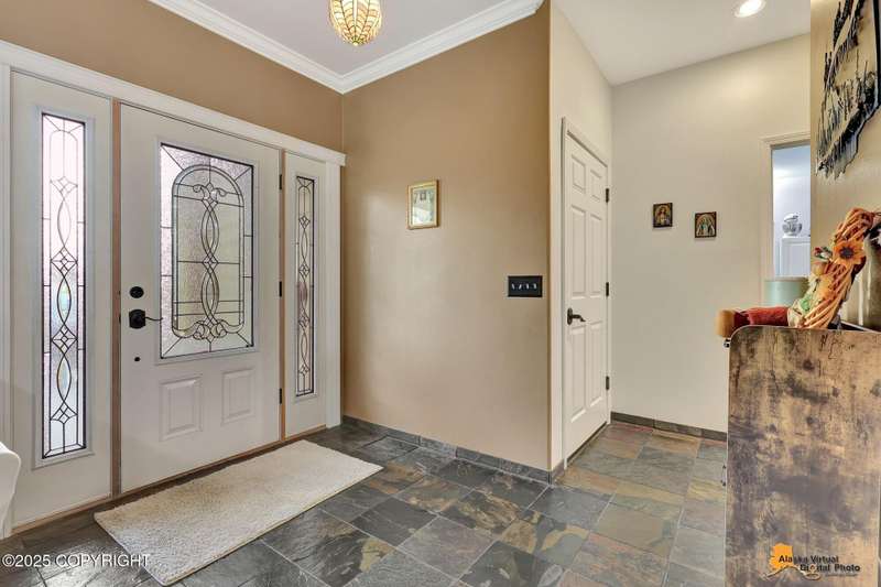Spacious & Inviting Home on 2 Acres in the Heart of Town Welcome to a beautiful and thoughtfully designed 4-bedroom, 4-bath home nestled on 2 acres in a central location. Tucked away for privacy yet close to everything, this warm and welcoming home offers both a cozy living room and a spacious family room—ideal for everyday living and entertaining. The oversized 1,080 sq ft three- car garage gives you all the space you need for vehicles, gear, and more. Inside, you'll find custom slate tile accents, 9' ceilings, and a flexible layout with a main level primary plus a second bedroom that is a perfect guest space or office. Bedrooms 3 and 4 both include fun loft spaces perfect for play, hobbies, or a quiet reading nook. The kitchen features gorgeous hickory cabinets and a layout that's both functional and inviting. Come home and relax on the covered deck, already wired for a hot tub and glass of bubbly! Set in an unbeatable central location off Seward Meridian Parkway just 5 minutes from the Glenn Hwy, this home offers one of the best commuting spots in town with quick access to shopping, schools, and major routes while still enjoying the space and privacy of a large lot. A rare opportunity to enjoy space, comfort, and convenience all right in the middle of town.