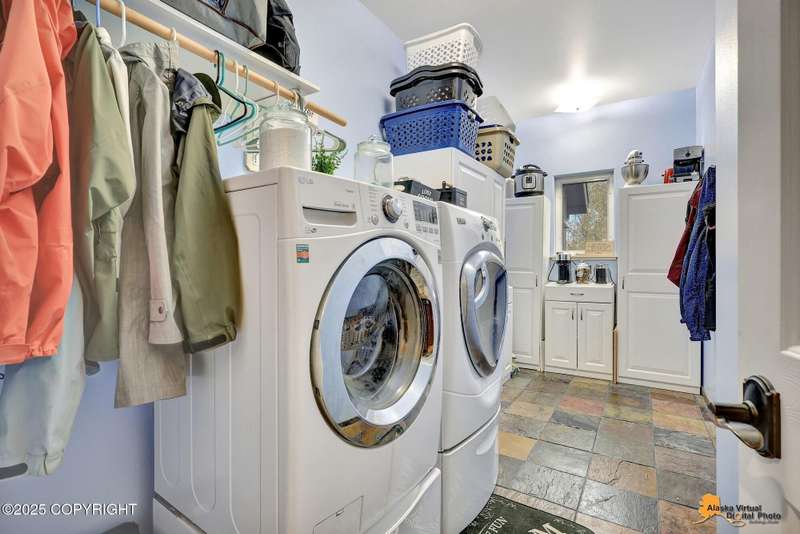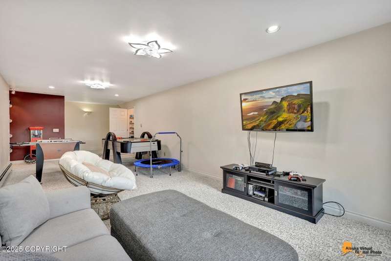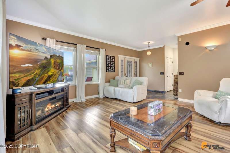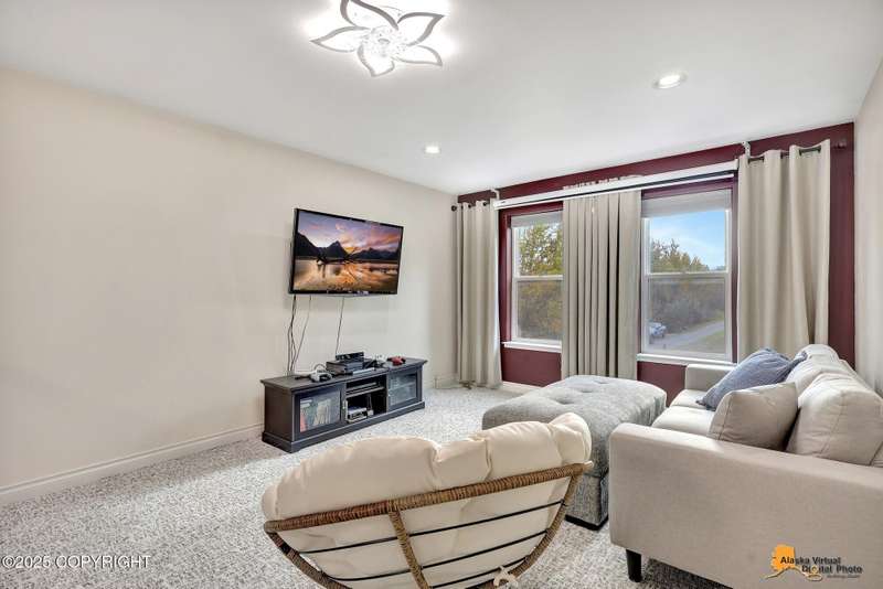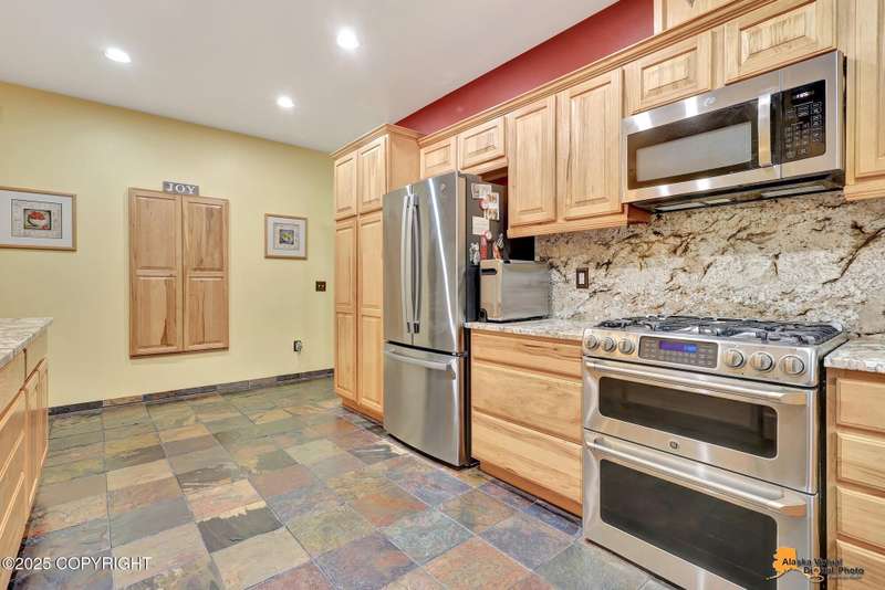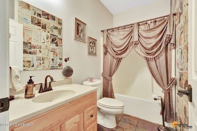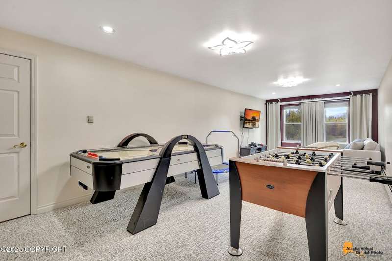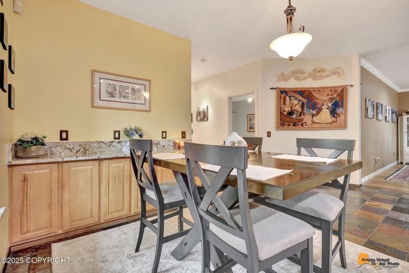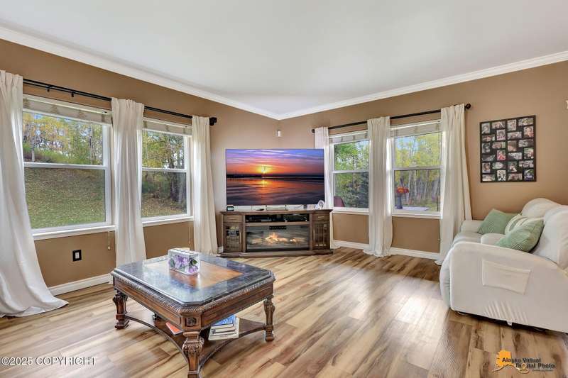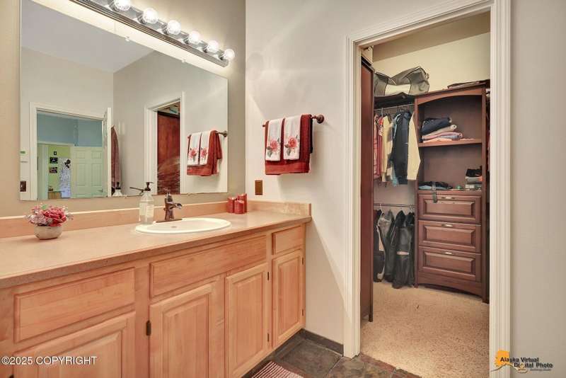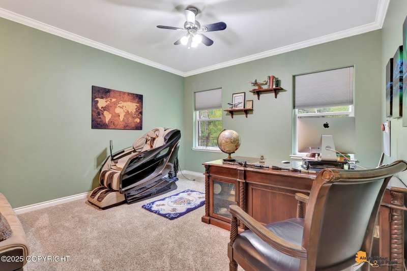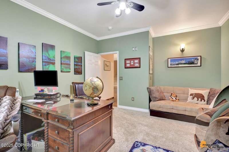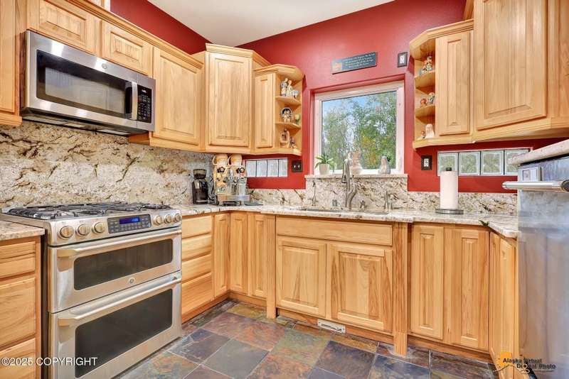 Spacious & Inviting Home on 2 Acres in the Heart of Town Welcome to a beautiful and thoughtfully designed 4-bedroom, 4-bath home nestled on 2 acres in a central location. Tucked away for privacy yet close to everything, this warm and welcoming home offers both a cozy living room and a spacious family room—ideal for everyday living and entertaining. The oversized 1,080 sq ft three- car garage gives you all the space you need for vehicles, gear, and more. Inside, you'll find custom slate tile accents, 9' ceilings, and a flexible layout with a main level primary plus a second bedroom that is a perfect guest space or office. Bedrooms 3 and 4 both include fun loft spaces perfect for play, hobbies, or a quiet reading nook. The kitchen features gorgeous hickory cabinets and a layout that's both functional and inviting. Come home and relax on the covered deck, already wired for a hot tub and glass of bubbly! Set in an unbeatable central location off Seward Meridian Parkway just 5 minutes from the Glenn Hwy, this home offers one of the best commuting spots in town with quick access to shopping, schools, and major routes while still enjoying the space and privacy of a large lot. A rare opportunity to enjoy space, comfort, and convenience all right in the middle of town.