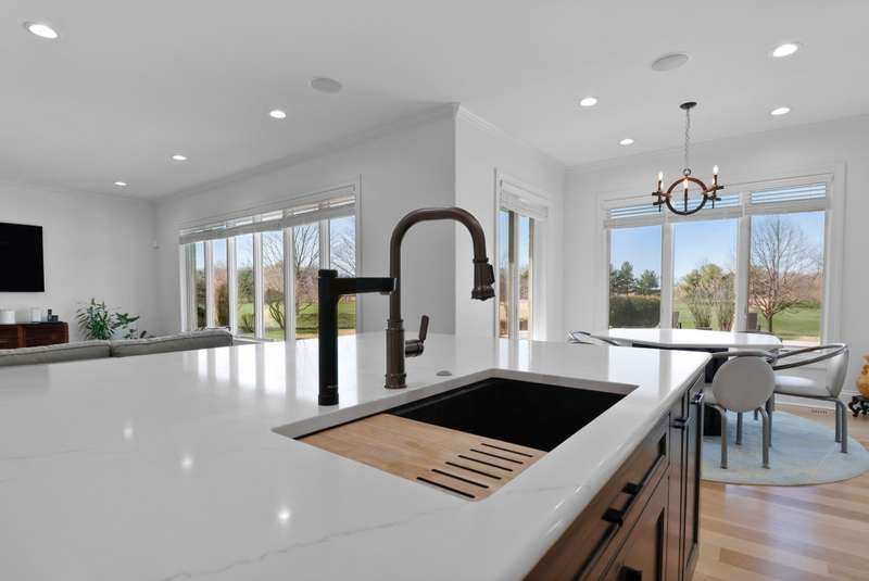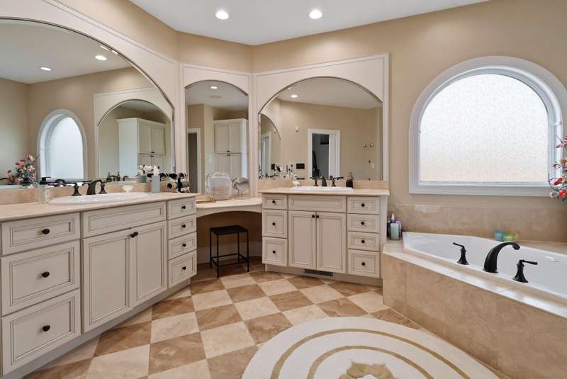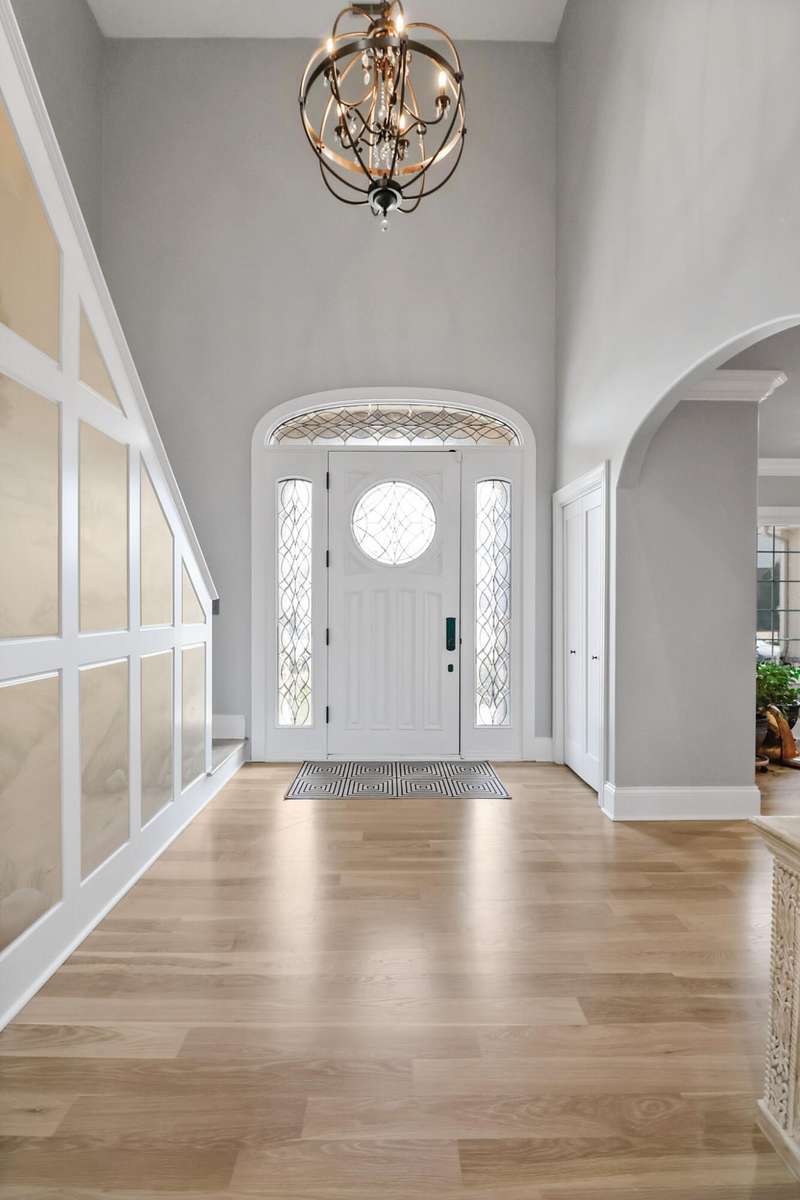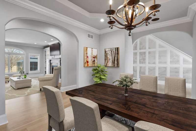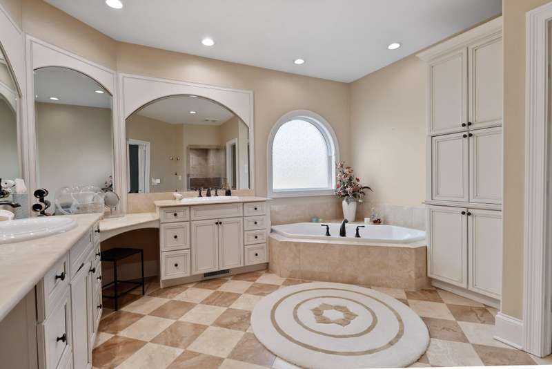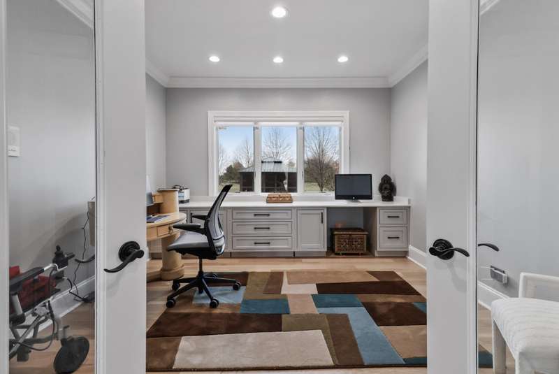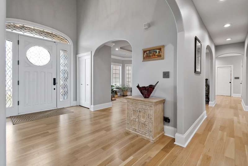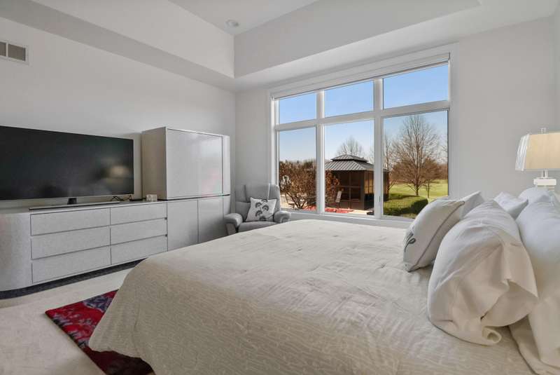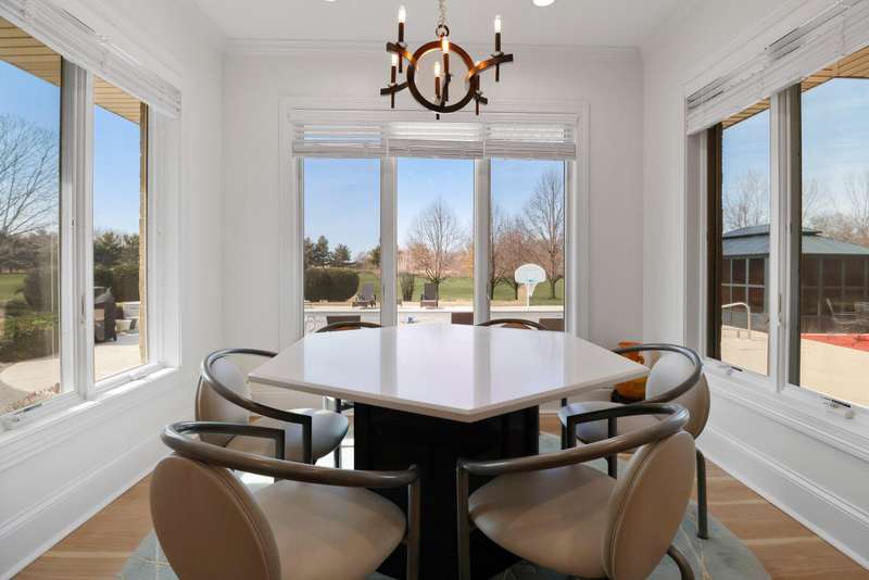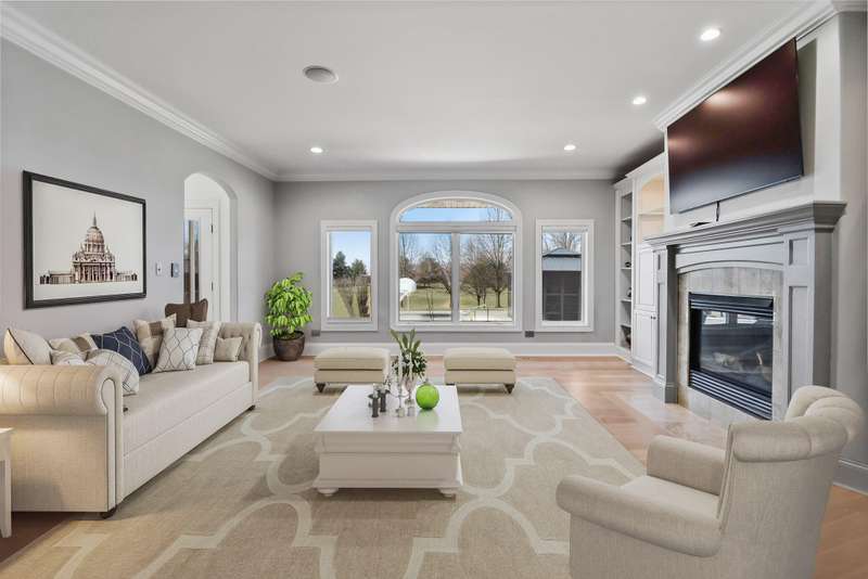 Welcome to a home where modern luxury, timeless design, and everyday comfort come together seamlessly. Nestled on a picturesque .70-acre golf course lot, this completely remodeled estate offers an unparalleled living experience that blends elegance with convenience. From the moment you step through the grand foyer, you are surrounded by refined finishes, thoughtful details, and sweeping views that make every space feel extraordinary. The main level sets the tone for both sophistication and practicality. Rich hardwood floors flow throughout, leading you into a dramatic great room anchored by a cozy fireplace and oversized windows framing the lush golf course beyond. The master suite on the main level provides the ultimate retreat with spa-like finishes, designed to evoke peace and relaxation at the end of the day. A second bedroom on the main level offers flexibility and comfort, complete with an ADA-accessible three-quarter bathroom, making it ideal for extended family or guests. An elegant formal dining room is perfectly suited for gatherings, while a private office with custom built-ins creates a polished space for productivity without sacrificing style. The heart of this home is the gourmet kitchen, designed for both function and entertaining. Featuring newer appliances, abundant cabinetry, and a separate wet bar area tailored for hosting. Upstairs, every bedroom offers its own private bath, ensuring that comfort and privacy are never compromised. A dedicated guest en-suite provides the perfect haven for visitors, while the upper-level laundry room adds convenience to daily routines. The finished basement extends the home's living space with all-new luxury vinyl plank flooring, a full kitchen and bar, 3/4 stunning bath and an expansive entertaining area. Outdoor living is elevated to resort standards with a sparkling in-ground pool, a generous patio, & uninterrupted views of the manicured fairways.