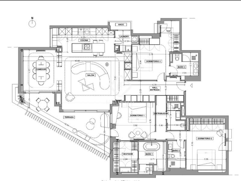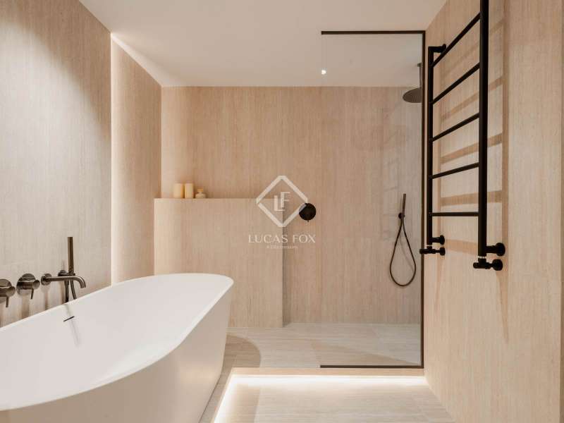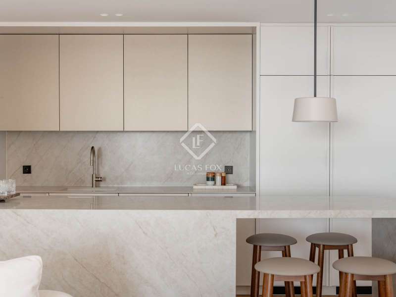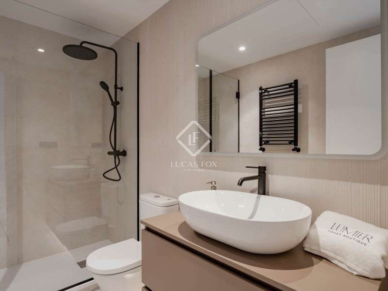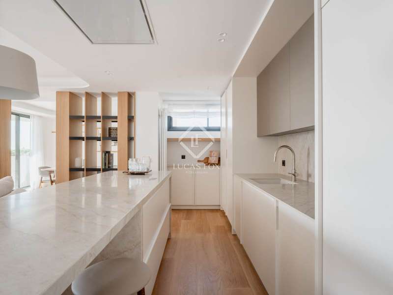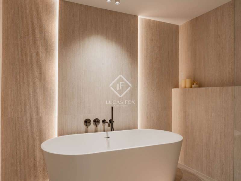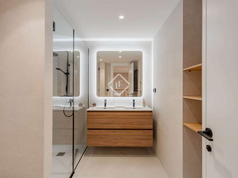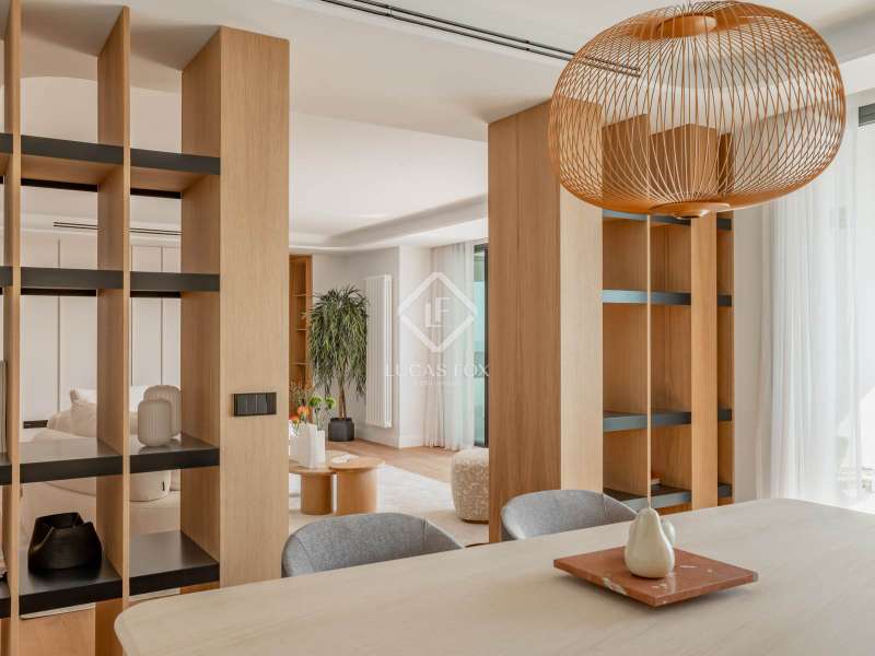 Lucas Fox presents this exclusive 283 m² penthouse on the 27th floor of the Torre de Valencia, the highest currently available for pre-sale in Madrid. The property is located on O'Donnell Street and offers unique panoramic views of El Retiro Park. It offers a comprehensive renovation project with delivery scheduled for September 2025. During the renovation, the original terrace was restored and transformed into a spectacular social space with landscaping, integrated vegetation, and custom furniture. The living area is organized as a large open space connecting the living room, dining room , and kitchen with a central island, equipped with high-end appliances and a separate laundry area . The private area features three bedrooms with private bathrooms and custom-made wardrobes, as well as a guest toilet. The main bedroom features a walk-in closet and a uniquely designed bathroom with a freestanding bathtub and natural stone pieces. The entire interior design, including furniture and decor, was designed exclusively for the property. The renovation features fine materials and a contemporary style that respects the tower's iconic spirit. Highlights include natural wood floors, CorVision aluminum frames, architectural lighting, and built-in faucets by Porcelanosa. The property includes a parking space, a storage room , and 24-hour doorman service. A one of a kind penthouse in the Madrid skyline, with unique light, height, and personality overlooking the Retiro Park.