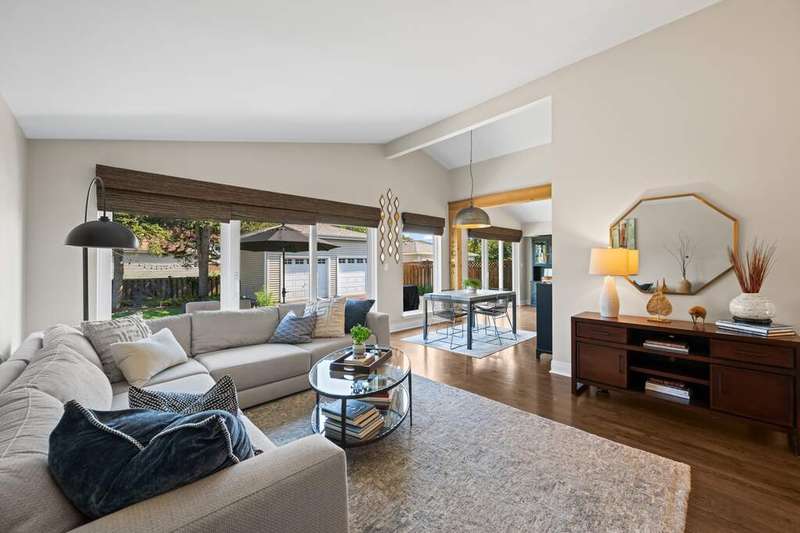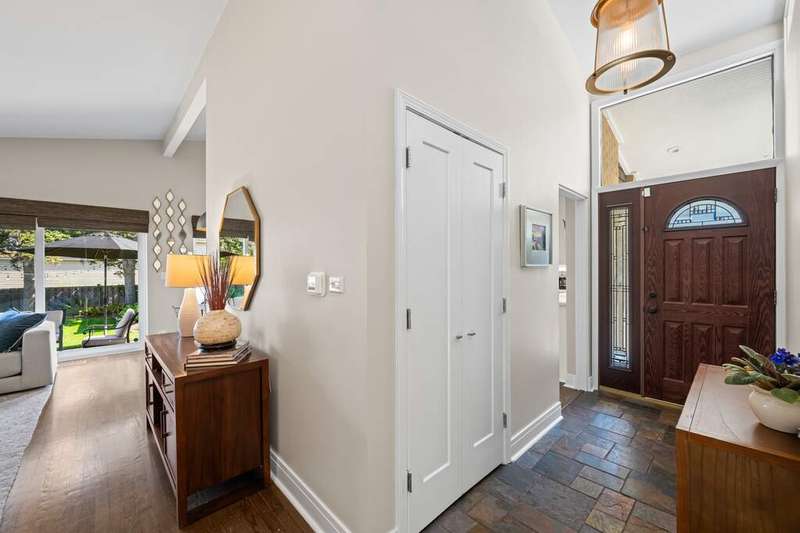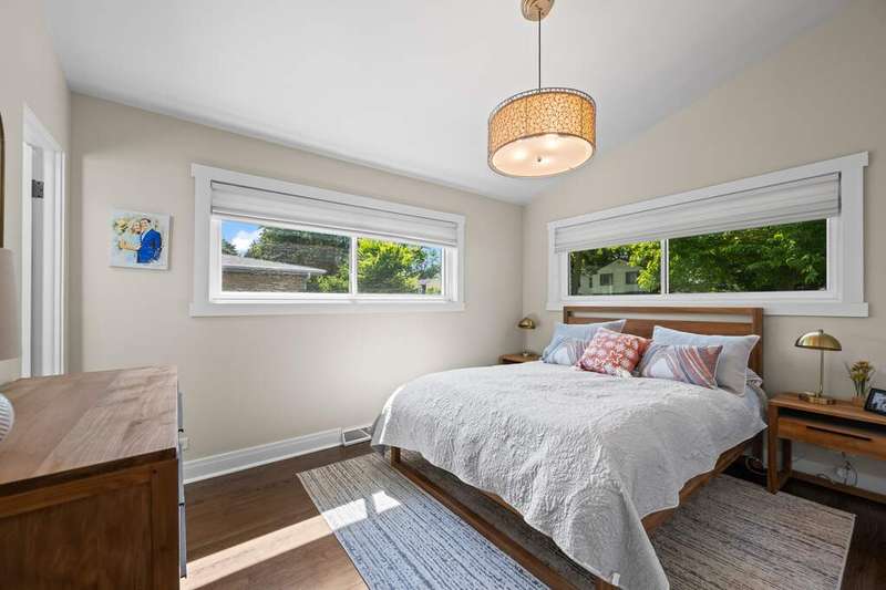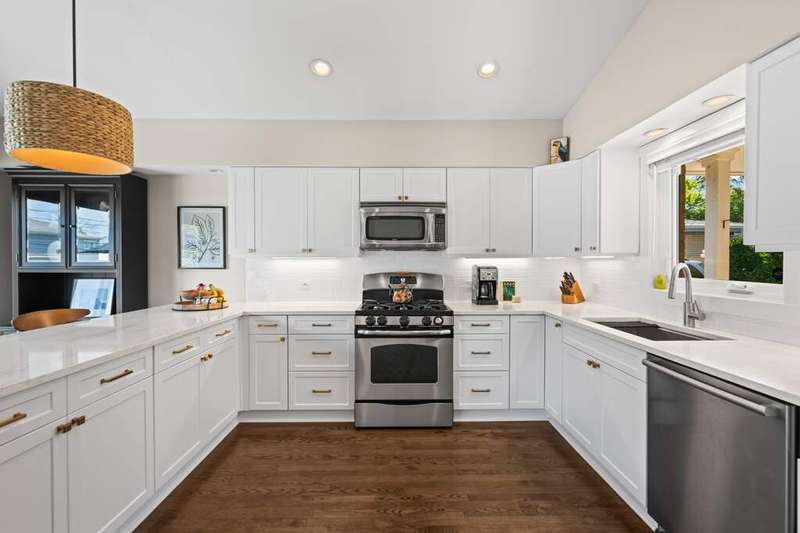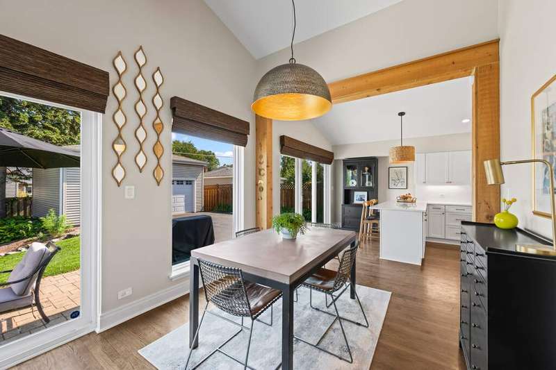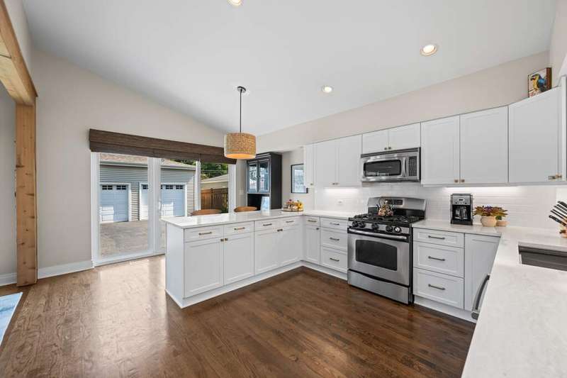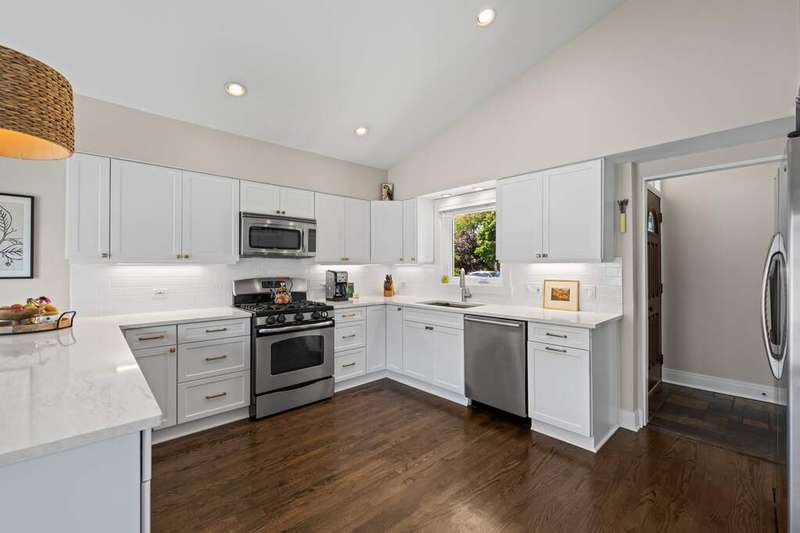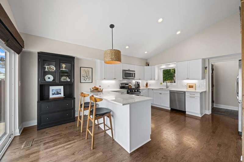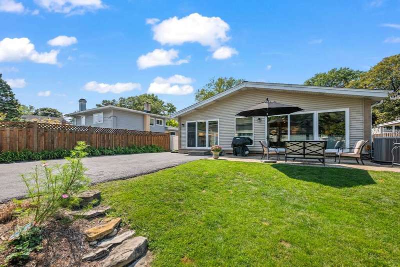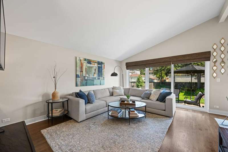 Welcome to this beautifully updated RANCH in the highly sought-after Scarsdale/Park Manor neighborhood of Arlington Heights. The home features 3 bedrooms, 2 full baths, and a bright open layout with soaring vaulted ceilings and refinished hardwood floors. A spacious family room with fireplace and a dramatic wall of windows along the back of the home fill the space with natural light and connect seamlessly to the fenced yard. The kitchen was refreshed in 2023 with quartz countertops and new cabinet fronts, while the bathrooms have been tastefully updated with modern finishes. The full finished basement offers incredible space for storage along with a flexible room ideal for an office, workout room, or playroom. The oversized 2.5-car garage provides ample storage and convenience. Enjoy modern comfort with the peace of mind that comes from all major systems being recently replaced. Ideally located within walking distance to Dryden Elementary, South Middle School, and Prospect High School. Just minutes from vibrant downtown Arlington Heights with shopping, dining, and Metra access. Recent updates include a full window and sliding glass door replacement along the back wall (2021), front yard landscaping (2022), new high-efficiency HVAC system (2024), and a brand-new roof on both the house and garage (2024), and driveway (2024). This is a rare opportunity to own a move-in-ready home in one of the area's most desirable neighborhoods.