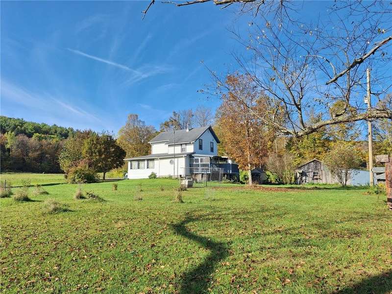 It's a lifestyle! Imagine living in a charming home nestled on 39 acres, where secluded country living meets natural beauty. Whether you envision a private estate, a hobby farm, or simply a peaceful retreat, this property offers endless possibilities, creating a sanctuary for nature lovers and outdoor enthusiasts. The land features new plantings, mature trees, fruits, flowers, open meadows, wooded areas, a creek, and protected wetlands. Explore, hunt, or simply revel in the tranquility of the outdoors.Inside, the home retains a few touches of original charm with a beautiful staircase and elegant French doors adding timeless character. The spacious sunroom provides a bright and airy space, ideal for a quiet reading nook or a plant-filled retreat. The living areas are designed for both relaxation and entertaining family and friends. A large back deck is the perfect spot to enjoy your morning coffee while taking in stunning views of your private acreage. This property is conveniently located with an easy drive from Watkins Glen, Ithaca, and Elmira.
