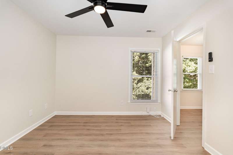 Incredible location and walkability! 3645 Mill Run is a short walk to Olde Raleigh Village shopping center...Harris Teeter, Char Grill, Rudino's, Starbucks, Bella Monica, Caribou Coffee, and more! This second floor 2 bedrooms/2 full baths condo is also convenient to downtown, Crabtree, Lenovo Center, Carter Finley Stadium, Rex Hospital, museums and parks. There are two good sized bedrooms with en suite full bathrooms. Perfect for a roommate ! Enjoy the open living room with fireplace (electric logs) and mantle. There is a breakfast area that could also be used as an office area or extension of the living room. Kitchen with painted white cabinets. New vinyl plank flooring throughout, along with fresh paint. New vanities and toilets in both bathrooms. Refrigerator and stacked washer and dryer convey. Balcony deck and outside storage closet. Roof replaced in 2023.