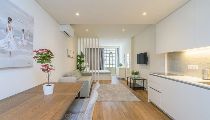 Palácio Marquesa is the most recent rehabilitation project in the historic center of Porto, perpetuating the design of the urban architecture of the 15th century and adding the quality, refinement and comfort of the 21st century. The project will consist of 16 luxury residential units, of one and two bedroom typologies, with areas varying between 70.85m2 and 143.85 m2. All units include air conditioning, double glazing, and fully equipped kitchens The building is located in the oldest part of the city of Porto, next to the emblematic São Bento Station and the elegant Dom Luís I Bridge. Situated in the historical area of the city, this property enjoys a privileged location due to its central location, where it is possible to find all kinds of traditional commerce and various tourist and cultural attractions such as the São Luís I Bridge.s Museum of Puppets, the Palácio das Artes, the Museu do Tesouro da Sé do Porto, the Museu de Arte Sacra e Arqueologia, the Praça da Ribeira, leisure areas such as Praça do Infante D. Henrique. With a vast transport network, restaurants, supermarkets and schools available. CHARACTERISTICS:Area: 85 m2 | 915 sq ft Bedrooms: 2 Bathrooms: 2 Energy efficiency: B- FEATURES: Balcony: 1.44m2