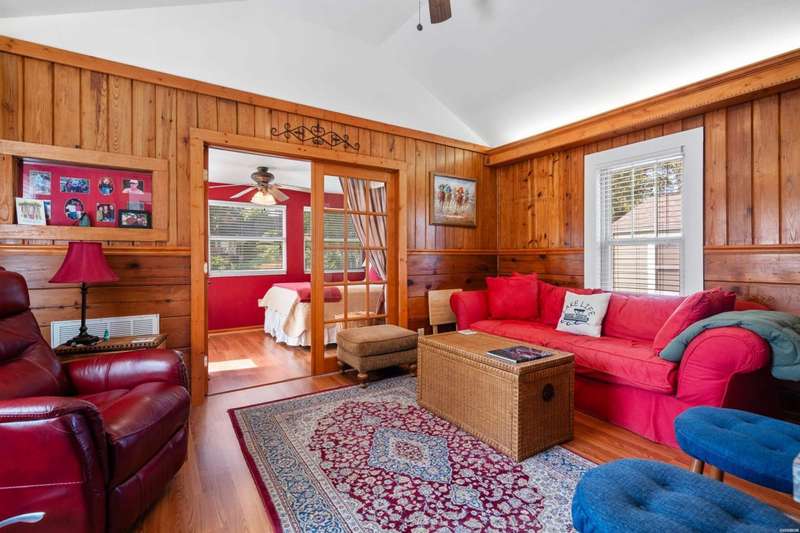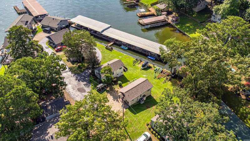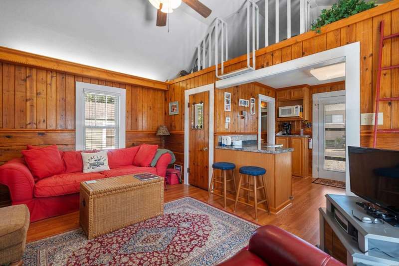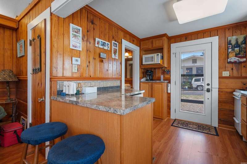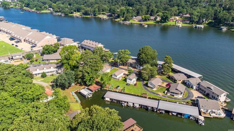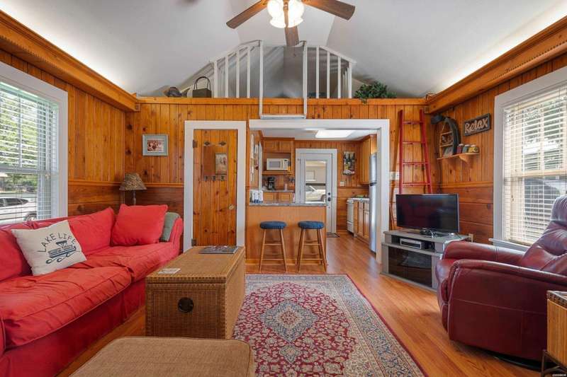 Step into this unique free standing lake cottage perfect for enjoying your lake days! Featuring Knotty Pine walls, the interior truly gives you the lake feeling. This gated community's amenities include a pool, clubhouse, storage for your lake items, a pier and boat launch ramp, along with 1 boat slip in the covered boat dock. Updates include new roof in 2024, new siding with additional insulation and windows. This unit also has its own washer/dryer for added convenience. The cottage is being offered fully furnished making it ready for you and your summer plans. Nightly rentals are not allowed, making for a close community feel amongst owners. Make this property yours today to start making your family memories this summer.