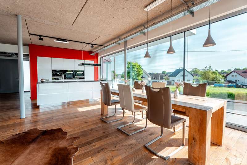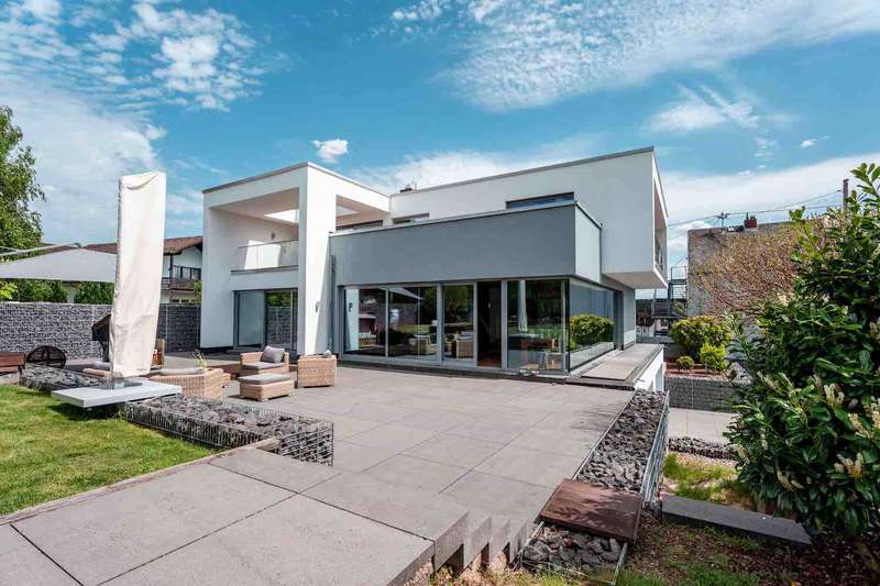 Exclusive real estate offer: Ensemble of three unique residential or commercial buildings Experience the perfect balance between modern design, classic living comfort and versatile usability in this extraordinary real estate ensemble. Property overview: 1st Bauhaus villa (built in 2015): - Architectural highlight in modern industrial style with approx. 280 m² of living space, full basement with integrated garage for up to 4 cars - 3 bedrooms, each with its own bathroom - Separate office wing with its own entrance available or for further versatile use - Exposed concrete walls, open routes for electrical cabling - High-quality technical equipment: electric venetian blind system, ventilation system, underfloor heating - Floor-to-ceiling triple-glazed aluminum windows and open floor plans for a light-flooded ambience - Many different outdoor seating areas on the approx. 1908 m² plot or on the balconies - The plot can also be built on in the rear area - Modern, high-quality fitted kitchen with cooking island, parquet flooring throughout the house, free-standing bathtub and many other exclusive details. 2nd house with 3 residential units - approx. 180 m² living space, 60 m² per unit - approx. 300 m² plot of land - Year of construction approx. 1920 - Recently extensively renovated: Modern bathrooms, new windows, energy-efficient heating system - Ideal for multi-generational living or for renting out 3rd modern bungalow with flat roof (built 2011) - approx. 120 m² usable area plus garage - approx. 332 m² plot - Flexible use: Previously used commercially, but can also be converted to residential use - Barrier-free access - Modern construction, floor plan can be freely designed according to your own ideas Plot & location: - Gate entrance system made of high-quality material underlines the exclusive character of the property - Up to 11 additional parking spaces available on the property - Location close to nature with excellent connections to urban infrastructure and the highway - Ideal for families, the self-employed or investors All 3 properties are heated by ONE combined heat and power unit. This unique ensemble offers numerous possible uses. Further information is available on request. Energy certificates for the other buildings: Building 2 Building information: - Building type: Detached single-family house - Year of construction of building: 2011 - Year of construction heat generator: 2016 - Number of apartments: 1 - Usable building area (AN): 131.8 m² Energy supply: - Main energy sources for heating and hot water: Local/district heating CHP - Type of ventilation: Window ventilation - Type of cooling: Passive cooling Energy parameters: - Final energy requirement: 161.7 kWh/(m²-a) - Primary energy requirement: 115.0 kWh/(m²-a) - Greenhouse gas emissions: 29.7 kg CO? equivalent/(m²-a) Requirements according to GEG: - Primary energy requirement: Actual value 115.0 kWh/(m²-a) (required value: 168.4 kWh/(m²-a)) Notes: - The energy performance certificate is based on **calculations of the energy requirement**. - The stated values are **standardized calculations** and not actual consumption values. - The energy certificate is valid until **10.12.2034**. Building 3 Building information: - Building type: Detached apartment building - Year of construction: 1900 - Year of construction heat generator: 2016 - Number of apartments: 3 - Usable building area (AN): 194.8 m² Energy supply: - Main energy sources for heating and hot water: local/district heating CHP - Type of ventilation**: Window ventilation - Type of cooling**: Passive cooling Energy parameters: - Final energy requirement: 169.6 kWh/(m²-a) - Primary energy requirement: 119.3 kWh/(m²-a) - Greenhouse gas emissions: 30.7 kg CO? equivalent/(m²-a) - Energy quality of the building envelope (HT'): 0.74 W/(m²-K) Requirements according to GEG: - Primary energy requirement: Actual value 119.3 kWh/(m²-a) (required value: 126.9 kWh/(m²-a)) - Summer thermal insulation: Includes Notes: - The energy performance certificate is based on calculations of the energy requirement. - The stated values are standardized calculations and not actual consumption values. - The energy certificate is valid until 10.12.2034.