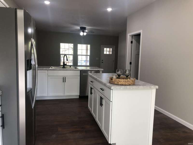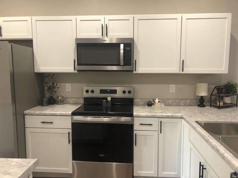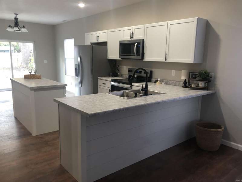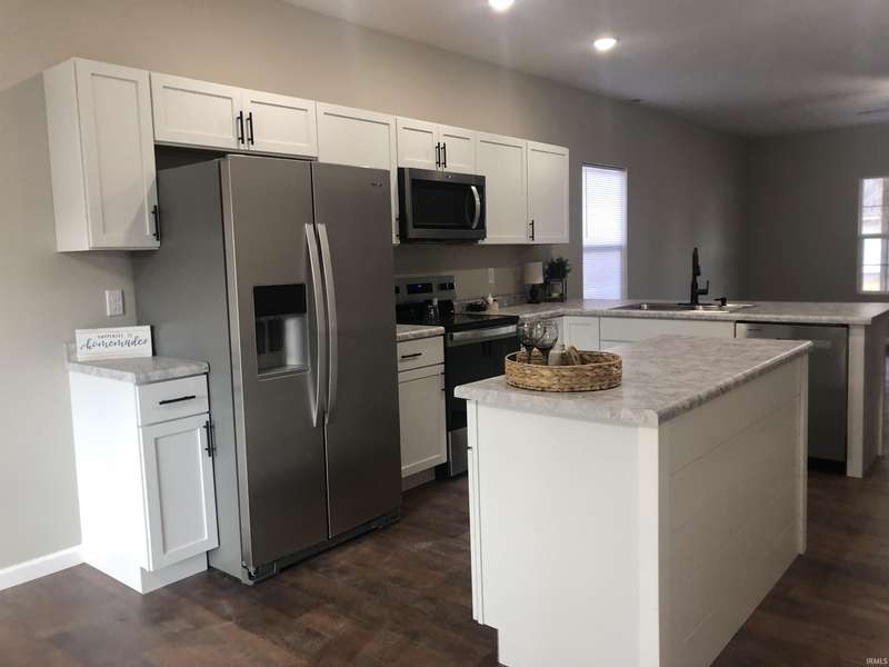Great curb appeal on this new construction with maintenance free exterior! (This picture is of a previous built bungalow showing the same floor plan, amenities and features with this build.) Large, covered porch for family to enjoy. Upon entering you will love this 1300 Sq Ft open floor plan with 9' ceilings that give an additional open feel. Neutral colors throughout with laminate flooring in all rooms except the bedrooms having carpeting. Living room overlooks the pretty kitchen breakfast bar. Nice size kitchen with ample white cabinetry, lots of countertop space and bonus island with additional built-in storage. Comes with range, refrigerator, dishwasher and microwave. Dining area overlooks the concrete patio and large back yard. 3 brms and two full baths. Large primary suite has walk in closet with lots of room for all your needs and a private bath. The two spare bedrooms are at the front of the home which provides privacy for the primary suite. Pretty guest bath off the spare bedrooms. Abundance of recessed lighting and neutral colors. Separate laundry room with all the mechanicals. All electric with heat pump and central air conditioning. Affordable living at its best!!