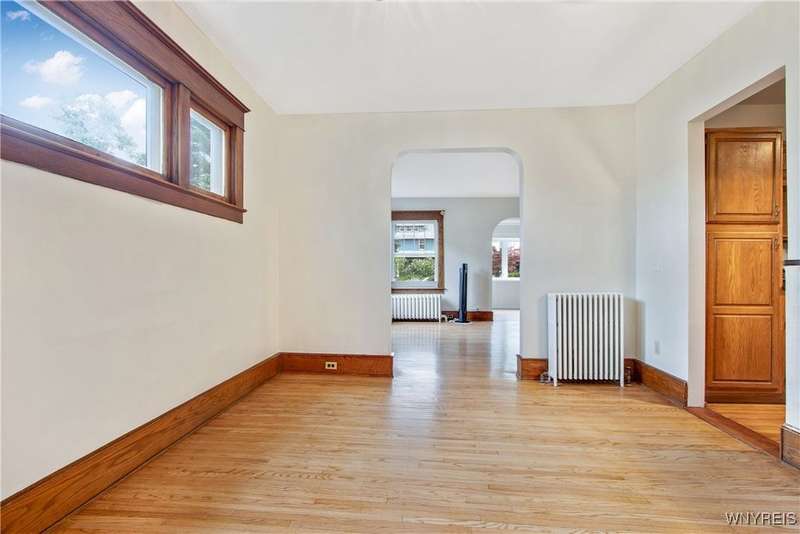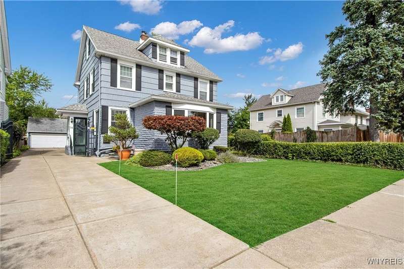 Welcome to 54 Admiral a beautifully maintained three-bedroom, two-and-a-half bath home nestled in one of North Buffalo's most sought after neighborhoods. This inviting property perfectly blends comfort, charm and functionality. Step inside to discover bright spacious rooms with natural light and beautiful hardwood floors. The sunroom is a perfect retreat and ideal for morning coffee, reading or simply enjoying the views of the backyard. The finished basement provides extra living space for a home gym, playroom or cozy media room. Outdoors, the in-ground pool and waterfall transform the fully fenced backyard into your own private summer getaway that also includes a rare two-and-a-half car garage. Location is just minutes from Delaware Park, Hertel Avenue dining and top-rated schools. Negotiations begin 11/25/25