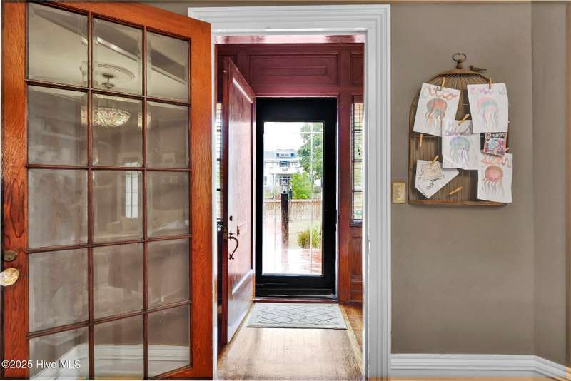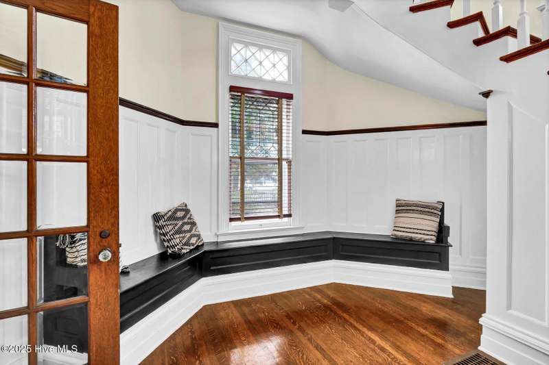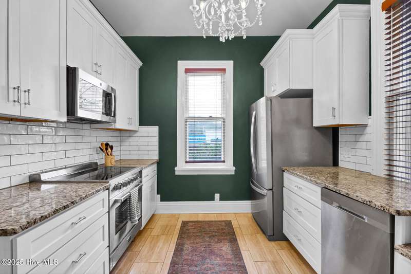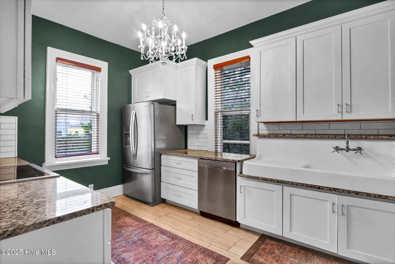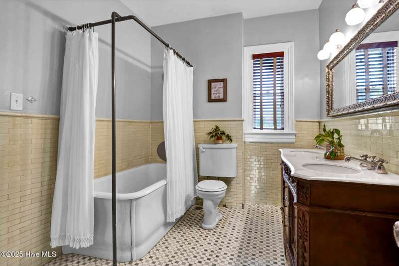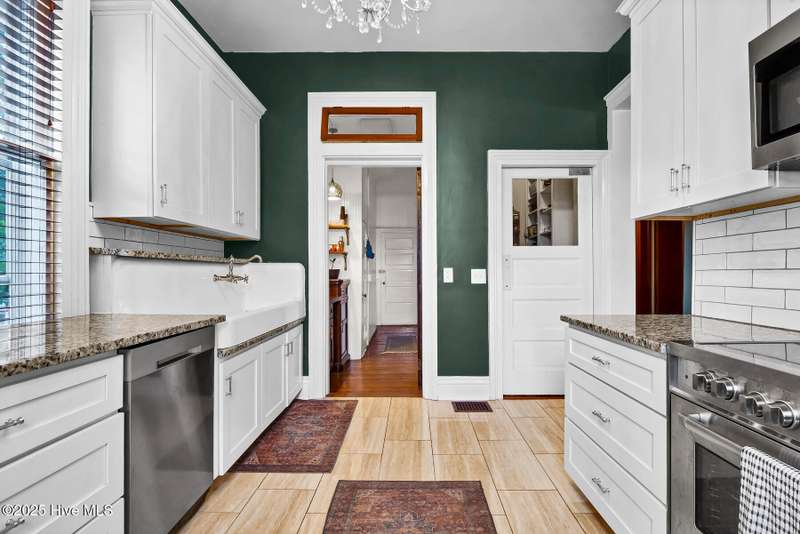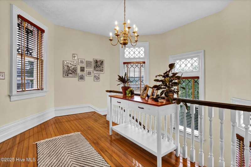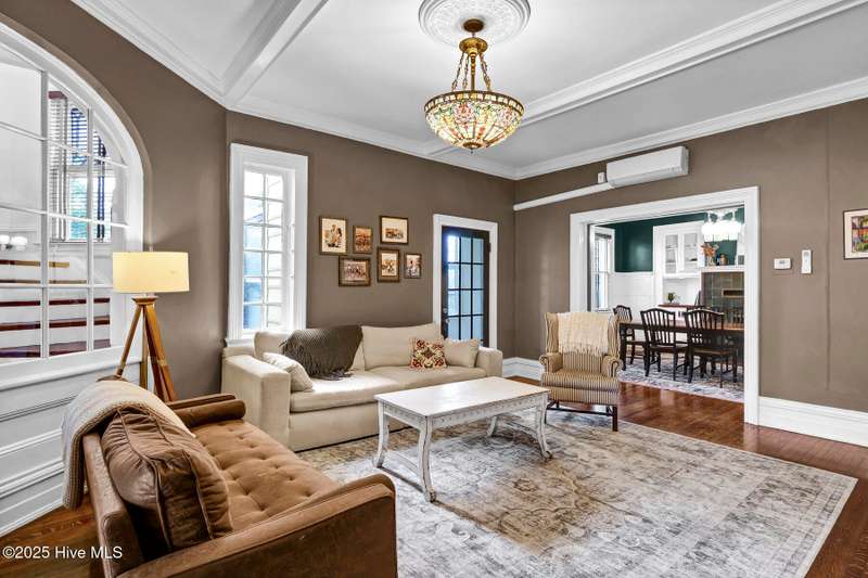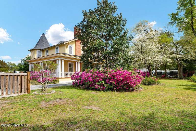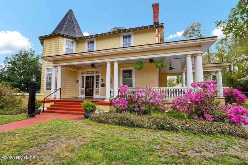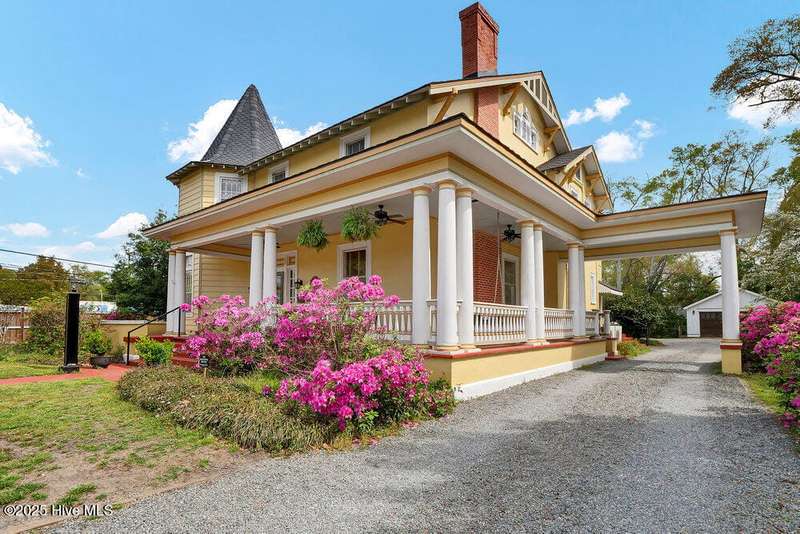 A home like no other, 416 Central Blvd. welcomes you into the historic neighborhood of Sunset Park. Registered with Wilmington's Historic Foundation, the Chadwick-Teague House was built in 1913 and offers all the warmth and convenience of modern living, while embracing its historic charm. The inviting wraparound porch is accessible from the front walkway or the portico, and allows plenty of room for rocking chairs and a porch swing. Upon entering the front door, a well-preserved spiral staircase sets the scene. The first-floor floorplan offers an open flow among living areas, pocket doors for versatility, a bedroom with ensuite bathroom, and ornate details that remind you of the home's rich history. The kitchen has been updated over the years, but the cast iron sink is a nod to its historical past. A scullery with a copper sink and beverage cooler is perfect for a coffee set up or cocktail bar. Up the grand staircase is the primary suite, plus two more bedrooms and a study. What was once a second-floor kitchen is now a laundry room. The third floor can be used for a bonus room or man cave. The home has ample closet space throughout, as well as a basement for extra storage. Included on the 0.66 acre property is a detached 2-car garage and a 953 sq. foot guest house. Formerly a barber shop, the guest house has been turned into an income-generating 3-bedroom / 1-bathroom rental property. This home is in close proximity to Wilmington's vibrant downtown, Greenfield Lake Amphitheatre, and Greenfield Lake Park.