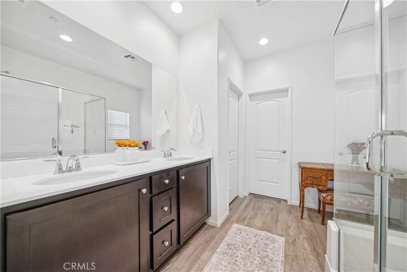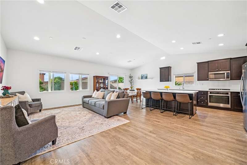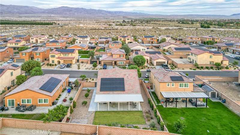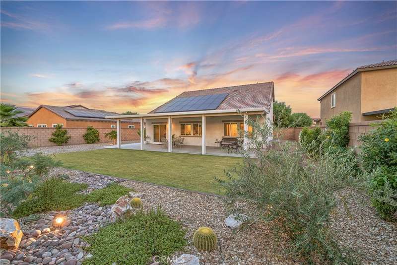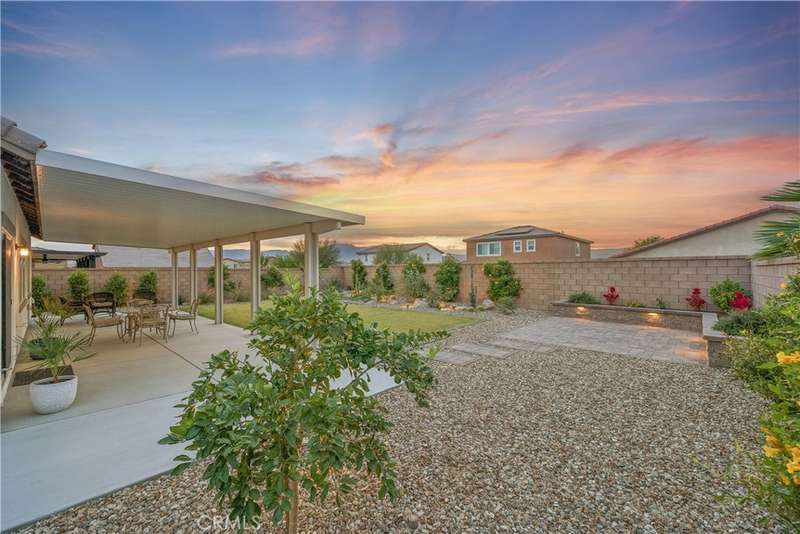 Exquisite like new beauty on a quiet low traffic interior street featuring 4 bedrooms, 3 baths and a custom designed pool size backyard with a massive shady patio cover. This home has it all! Starting with great curb appeal, including mature desert landscaping, enter into an inviting foyer which opens to a stunning great room with vaulted ceilings and views of the expansive backyard. With wide plank engineered wood flooring, recessed lighting and warm neutral paint, the great room has an abundance of space, great natural light, and an overwhelming feeling of convenience and comfort. A large island anchors the entertainer's kitchen, and this is where the magic happens. With quartz counters, bar seating for 4 or more, an abundance of counter prep and storage space, stainless steel appliances and a large closet pantry, the kitchen is perfect for hosting your next gathering or everyday functionality. Adjacent to the kitchen is a sizeable dining room and beyond the sliding glass door is the oversized covered patio, which offers room for multiple shaded seating areas to relax. A large grass lawn, mature planter beds, three producing citrus trees and a custom paver sitting area in the corner that features a seating wall with great views of the yard looking back towards the house, the big sky and hills beyond. Imagine all the great opportunities for indoor/outdoor living. Back inside, there are two bedrooms on the main level including a spacious primary suite with a dedicated ensuite featuring a dual sink vanity, space for a private vanity set up or possibly a soaking tub, a step-in shower, a privacy water closet door and a walk-in closet. The second guest bedroom, currently set up as a nursery, could easily be an office, den, or craft room. A downstairs guest bath with a step-in shower and an interior laundry room complete the lower level. Upstairs has a large loft and is flanked on either side by spacious guest bedrooms, each with great natural light and large walk in closets. A full guest bath on the upper level making it the perfect set up for a larger household or can serve as a guest retreat.The neighborhood park is just steps away and features a fantastic playground, a large field, and sport courts. Conveniently located minutes from easy commuting access, shopping, dining and entertainment options, and great schools. With an attached 2 car garage, a 2 car driveway and a side yard large enough to store your RV or boat this is the one! Welcome home.