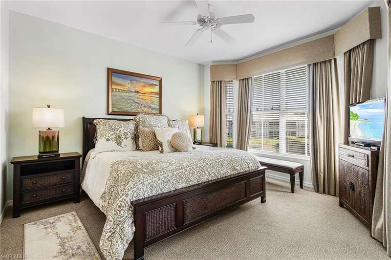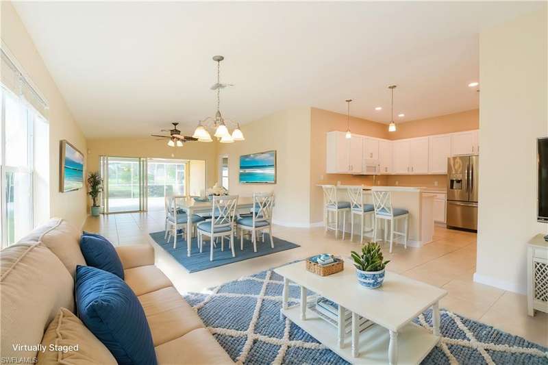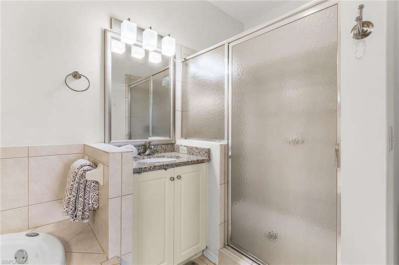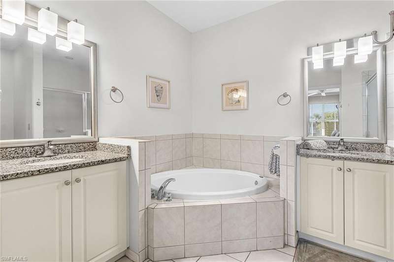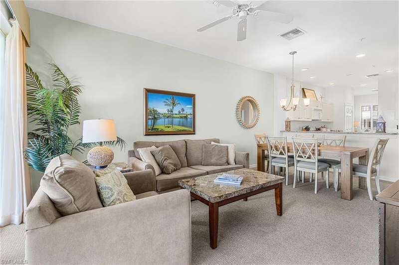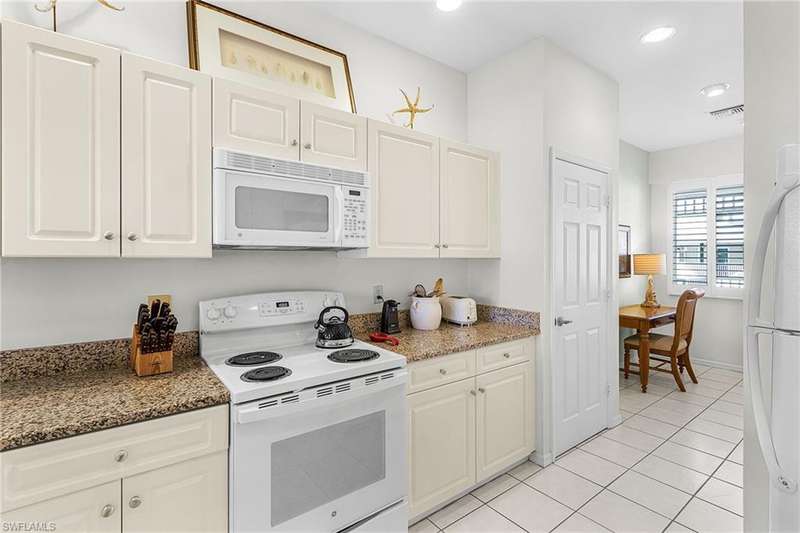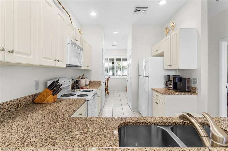 Welcome to 7910 Mahogany Run Lane, Unit 1225 an inviting 2-bedroom, 2-bathroom condo located in the highly desirable subdivision of Greenlinks at Lely Resort. This beautifully maintained residence offers a spacious and open floor plan, perfect for both relaxing and entertaining. The kitchen features granite countertops, modern appliances, and a breakfast bar that flows seamlessly into the living and dining areas. Each bedroom is thoughtfully designed with its own en-suite bathroom, providing comfort and privacy for owners and guests alike. Step out onto the screened lanai and enjoy peaceful views of the lush tropical landscaping and lake, just steps away from the resort-style amenities that make Greenlinks so special. Residents and guests have access to a sparkling pool, hot tub, tennis courts, fitness center, and the nearby championship golf courses of Flamingo and Mustang all part of the vibrant Lely Resort lifestyle. This unit is turnkey furnished and is one of the few properties