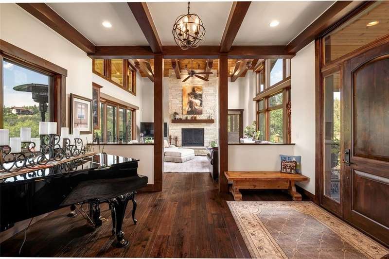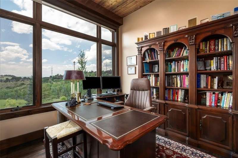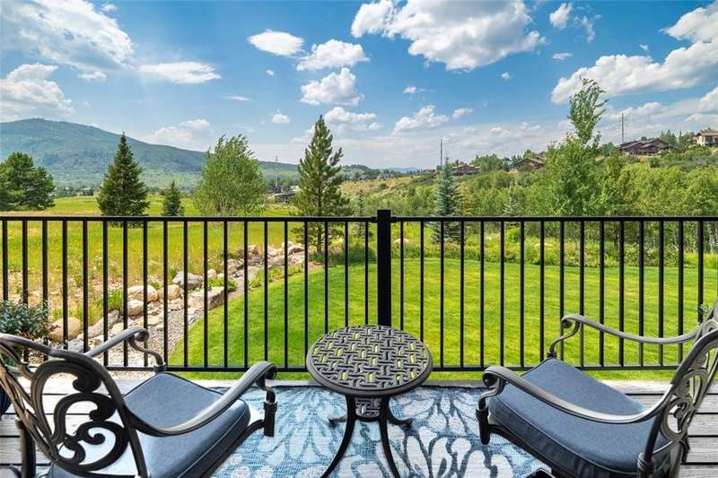 Perfectly positioned on one of the most desirable lots in Steamboat’s exclusive Fish Creek Meadows neighborhood, this stunning 4,830 SF custom home offers an exceptional blend of privacy, luxury, and convenience. Completed in 2018, the 4BR, 4.5BA residence is built to uncompromising standards and rests on a 2.3-acre lot adjoining the 68-acre Rita Valentine Park—providing protected views of the Steamboat Ski Area and Emerald Mountain while offering the feel of a much larger estate. The great room impresses with soaring 20-foot cathedral ceilings, a striking dry stack sandstone fireplace, and walls of windows framing postcard-worthy panoramas. The chef’s kitchen features high-end appliances, custom cabinetry, a walnut breakfast bar, built-in dining nook, and a pass-through window to the expansive wraparound deck—ideal for al fresco dining. The adjacent dining area enjoys direct Mt. Werner views. The main level also includes a private office with deck access, half bath, pantry, and a serene primary suite with fireplace, spa-like five-piece bath, soaking tub, walk-in closet, and private deck overlooking a tranquil waterfall. A spacious mud/laundry room connects to an oversized 4-car garage (1,116 SF, not in total SF) with built-in dog wash. Downstairs offers a fitness room, den with built-in entertainment center, and a striking wet bar with leathered black granite, two wine fridges, beverage fridge, sink, and dishwasher. A junior primary suite has patio access and full bath, while a 3rd bedroom is also ensuite and 4th shares with the living area. A second laundry, ample storage, and walk-out access to a beautifully landscaped yard with direct access to Rita Valentine Park, including Fox Creek Trail and beyond. Situated in the center of town, this irreplaceable residence blends the seclusion of a private estate with unmatched quality and unparalleled access to Steamboat’s vibrant cultural, dining, and recreational amenities and the best of mountain-town living.