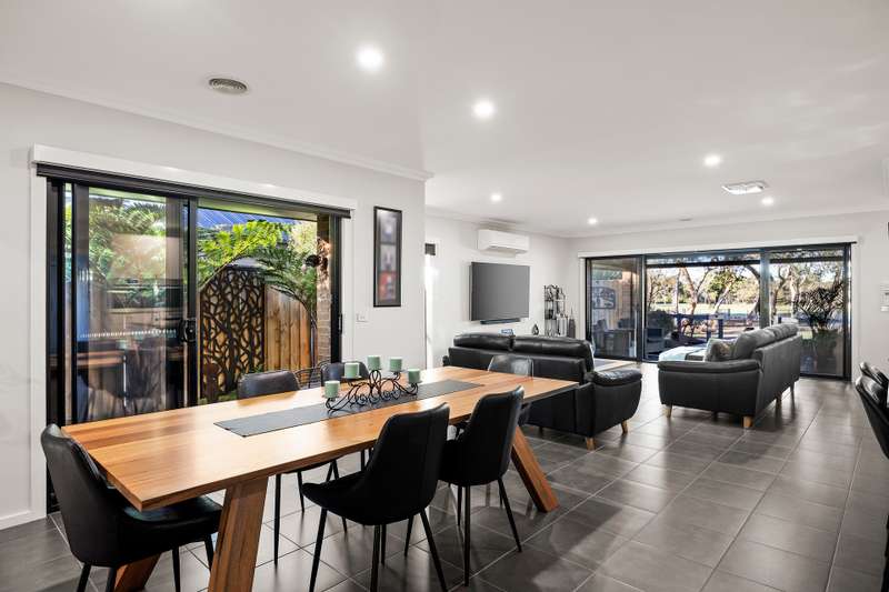 Situated in one of Eynesburys most exclusive and peaceful cul-de-sac the lifestyle is evident before you approach the front porch. Offering you the unique surrounds of the heritage listed sites, serene walking trails and natural wildlife, this is an opportunity not to be missed! Simply breathtaking, this outstanding home does not compromise when it comes to luxurious family living. Exquisitely presented throughout, the home comprises of four bedrooms. The grand master suite hosting a spacious fitted, walk-in robe and en-suite with stone bench tops, double vanity and separate toilet. The remaining three bedrooms comprise built in robes, quality carpet, a wealth of natural light and are serviced by a conveniently located bright central bathroom and separate toilet. The home is built around a galley-style kitchen which is perfect for entertaining and features stone benchtops, an abundance of draws and cupboard space, breakfast bench, large walk-in pantry, pendant lighting and quality stainless-steel appliances including 900mm oven/range hood. All this adjoining the main family living and dining area giving you and two separate alfresco areas. Step outside beyond the glass stacker doors onto the large alfresco area, set amongst mature fruit trees with expansive views over Golf Course and lush lawn. You will instantly feel at ease as you entertain your family and guests or just revel in the tranquility. Further features of this home include high ceilings, ducted heating, evaporative cooling, double car garage with remote control access, separate study, powder room, second living area or theatre room as its currently presented. With the convenience of Melbourne's CBD only 38km away and located a stone's throw to the Heritage listed Eynesbury Homestead with restaurant, cafe and Golf Pro shop, walking trail access at your rear gate and proximity to the Primary School, Pre-school and sporting complex, this well-established home gives you the opportunity to simply move in, relax and enjoy. Please call us to arrange an inspection or come and visit us at one of our open homes!