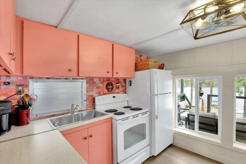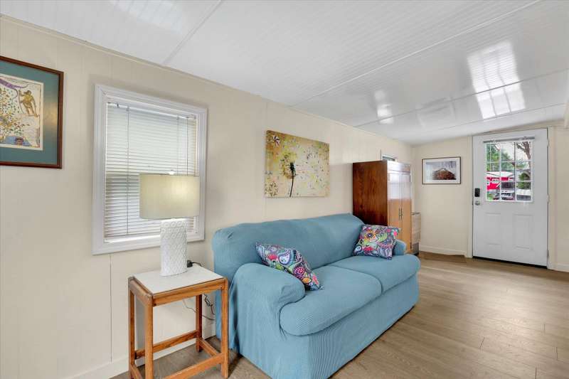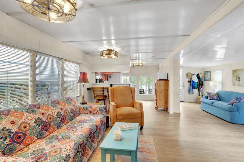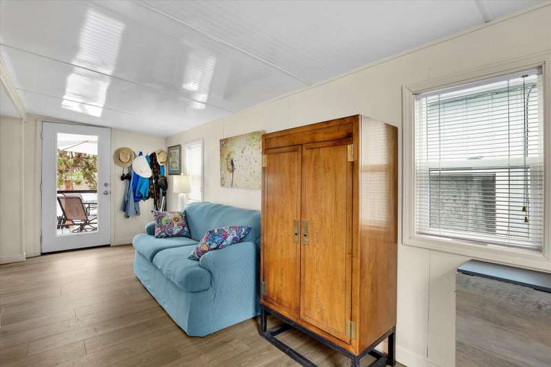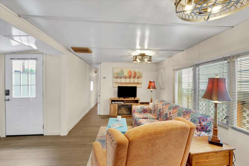 Lake living made easy on Badger Lake. 2 bedroom, one bathroom home just steps away from the private, residents only beach. Updated throughout, this low maintenance retreat is perfect for relaxation or enjoying the perks of lake life- fishing, paddle boarding or soaking up the sun. This is the place where memories are made. New roof, windows, LVP flooring, updated kitchen, new paint throughout and lovely yard added. Too many updates to mention, so please reach out for full update list. Must be approved by the park. Lot rent is $695 a month which includes water, sewer and common area maintenance.