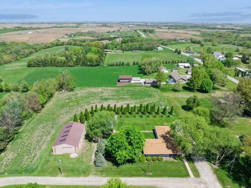 Welcome to this beautifully maintained 3-bedroom, 1.5-bath ranch-style home on 2.69 acres in the North Mahaska School District. Offering 1,515 sq ft of main-level living space with a large, clean unfinished basement, this property features a spacious living room and an open kitchen/dining combo with newer appliances. The bedrooms include oversized closets with walk-in lights, and the convenience of main-floor laundry and a large mudroom makes daily living easy. The home has seen numerous updates, including newer windows, gutters, siding, front door, roof, and a new furnace in 2024. A whole-house 20KW Kohler Generator ensures peace of mind during power outages. On this beautiful acreage, you'll find both an attached two-stall garage and a detached two-stall garage equipped with electrical and concrete floors. A massive 40x64 shop offers 7/8 concrete floors, electrical, with 12-foot and 11-foot doors, while a second 30x36 shop includes heat on one side, electric, and finished concrete flooring. Two hydrants are located near the shop and garden areas, and a wood shed adds more storage. On the back of the acreage is a hayfield that was leased out for a source of income. Enjoy the peaceful setting from your covered front porch, which features a gas hookup ready for your grill. The lot is a blend of mature trees, open grass areas, and garden space, all close to several towns located just 70 miles from Des Moines, 17 miles to Pella, 12 miles to Montezuma, and 22 miles to Grinnell.