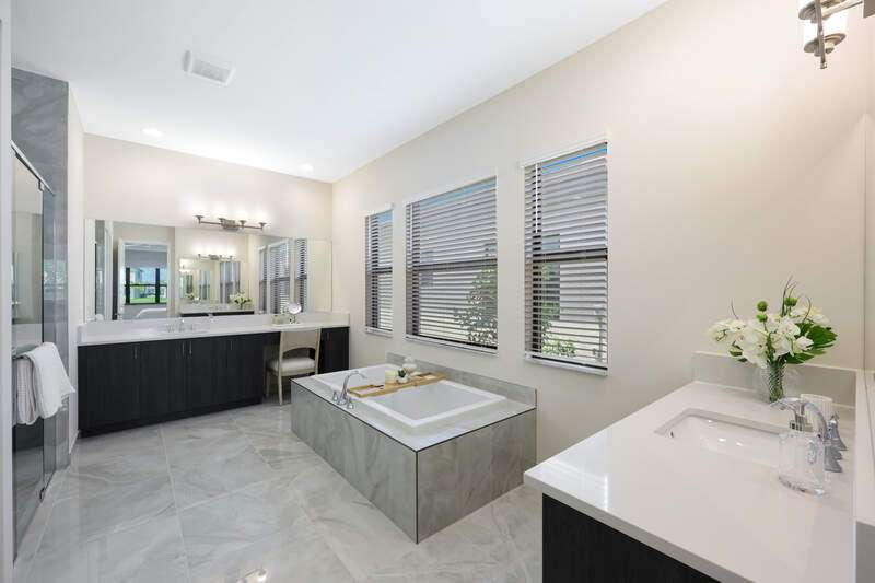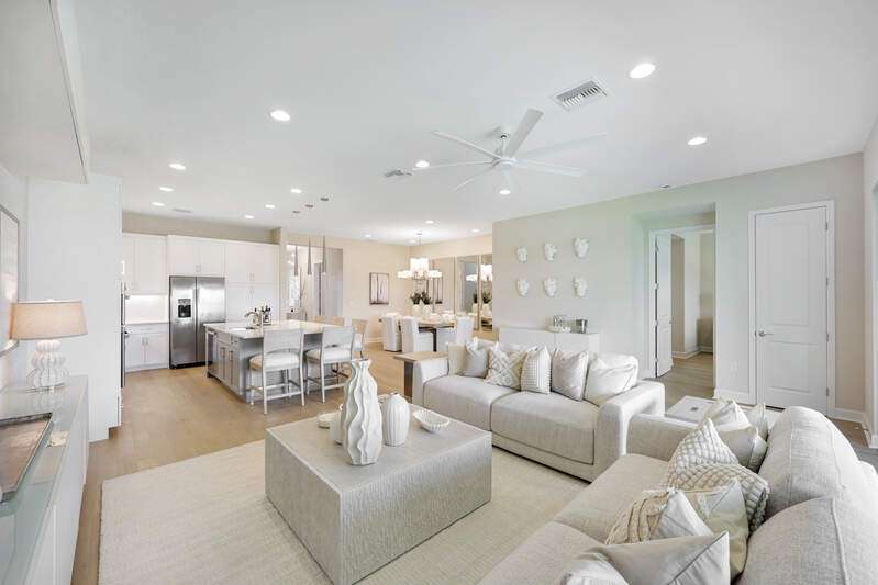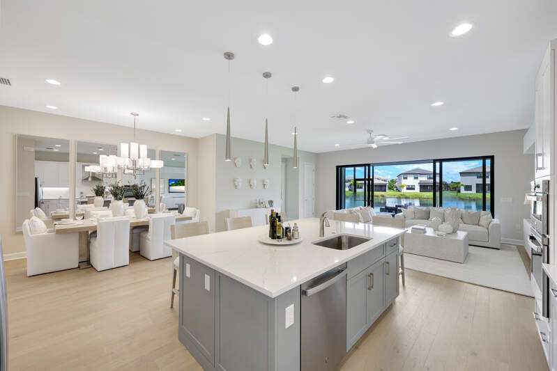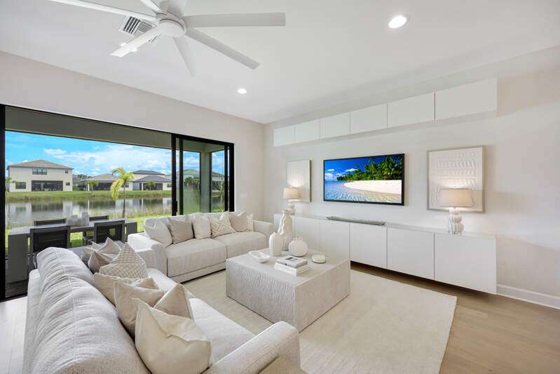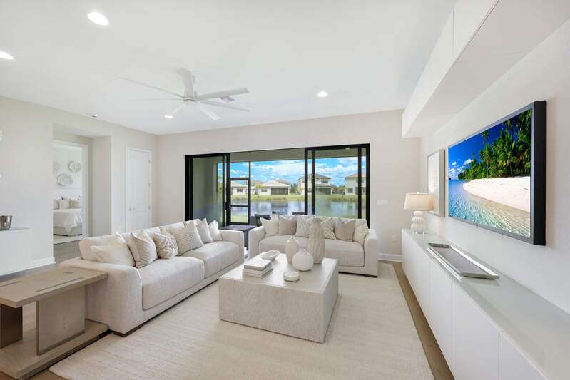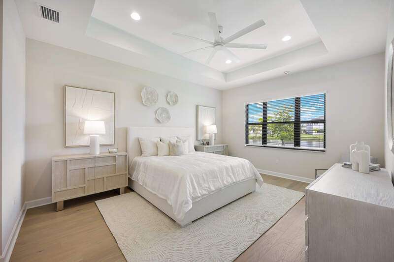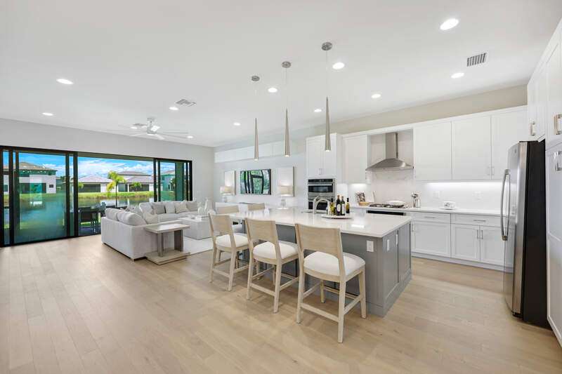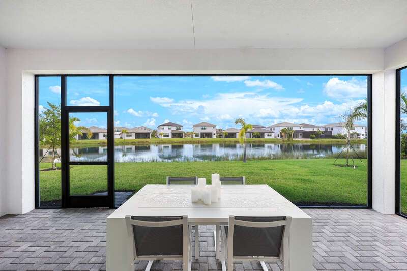 New construction available for Immediate Occupancy! This Furnished "Biscayne" home with Lake Views offers Impact Resistant Windows throughout and has 3 Bedrooms plus 4 Baths, and a 2-Car Garage, an open kitchen with stainless steel GE Appliances and Quartz Countertops. The master bedroom offers a coffered ceiling and spacious closets. Other features include: Glass Entry Door, Wood Flooring in Main areas and Master Bedroom, extended width of driveway and more! RiverCreek is Estero's hottest new gated community and features numerous amenities for everyone including a 12,000 square foot Clubhouse with Resort-style pool, event room, fitness center, indoor sports court, tennis, pickleball, basketball and more!