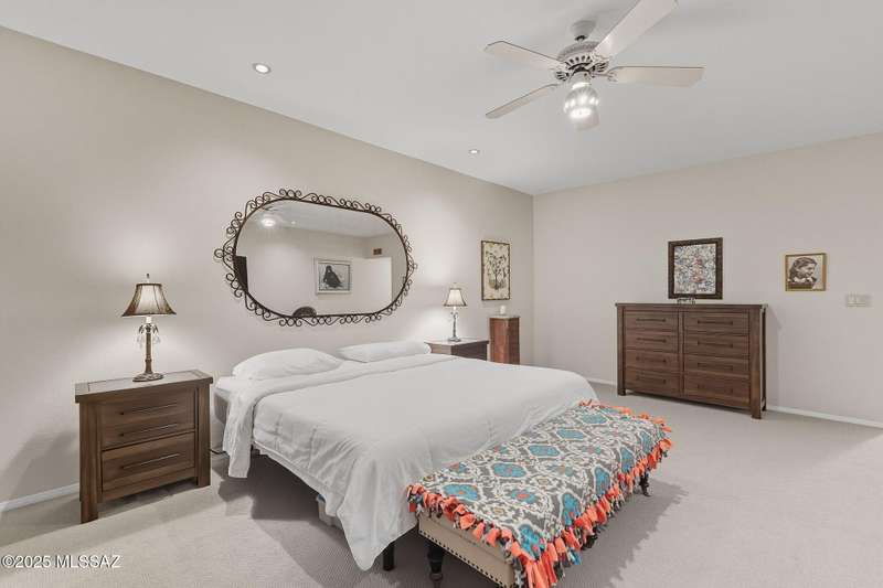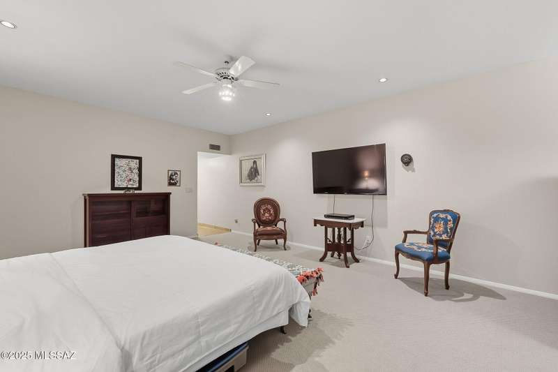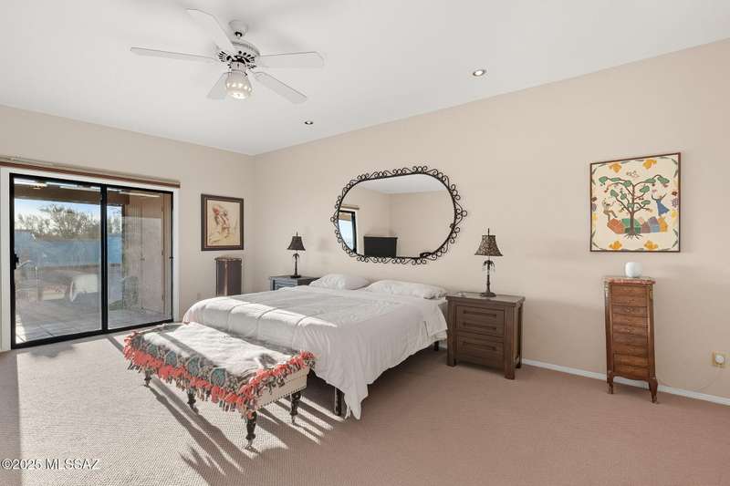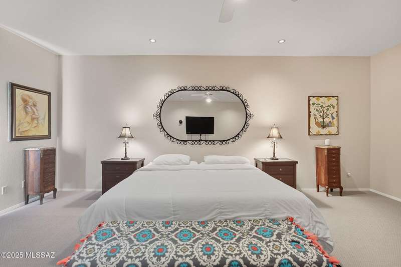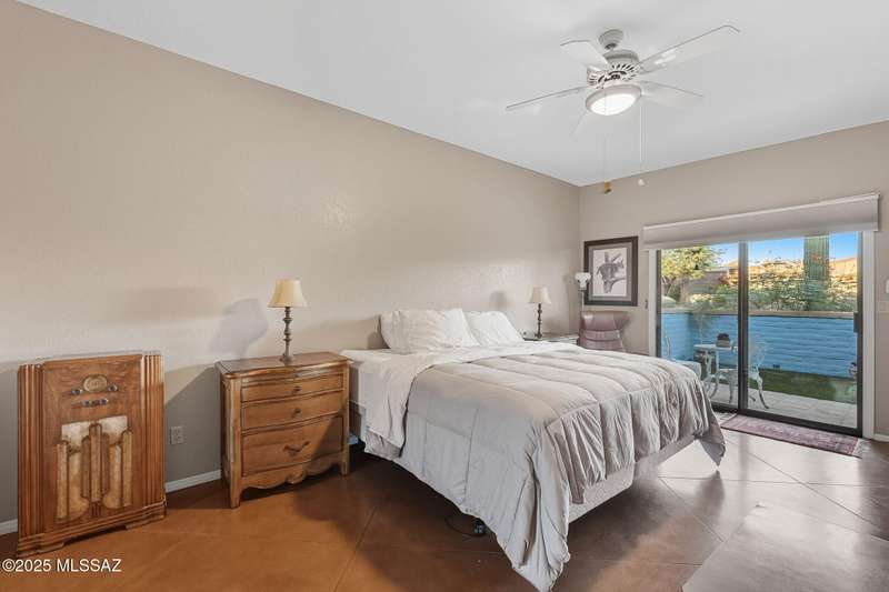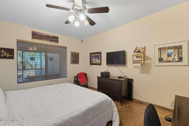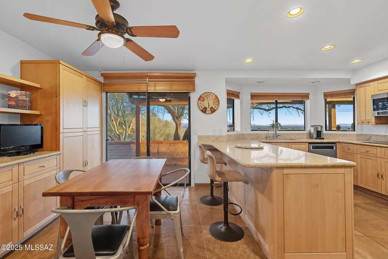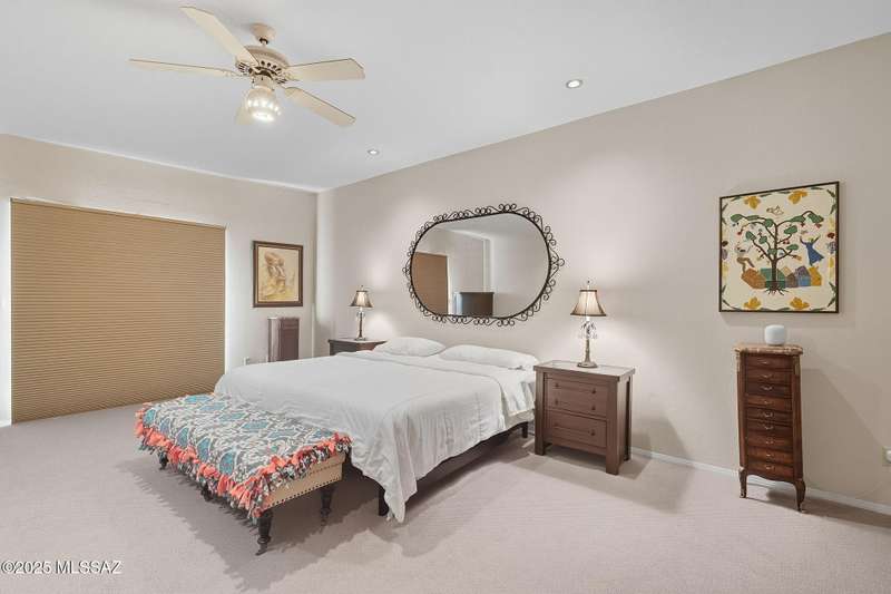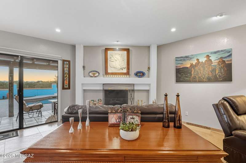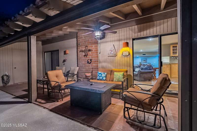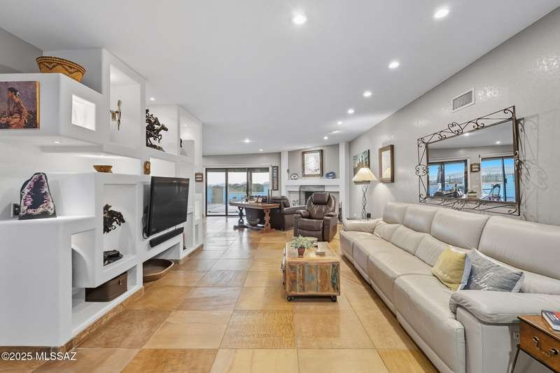 Detached expanded Miramar. Step into this beautifully appointed home with secure entry porch with a wrought iron enclosure offering both charm and peace of mind. Inside, you'll find a spacious living area featuring handcrafted built-ins--ideal for showcasing art, collectibles, and media. A cozy gas fireplace anchors the space, creating a warm and inviting atmosphere. The open dining room offers breathtaking views of the desert landscape and sparkling city lights, perfect for entertaining or quiet evenings. The versatile second bedroom doubles as a home office, complete with a custom Murphy bed, two built-in chests of drawers, and dual closets for maximum functionality. Recently remodeled bathrooms include an oversized master shower that feels like a private spa retreat.