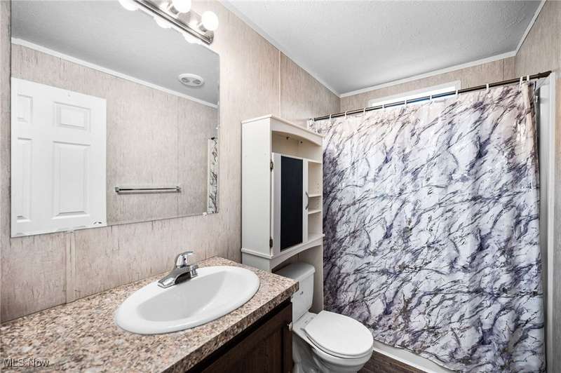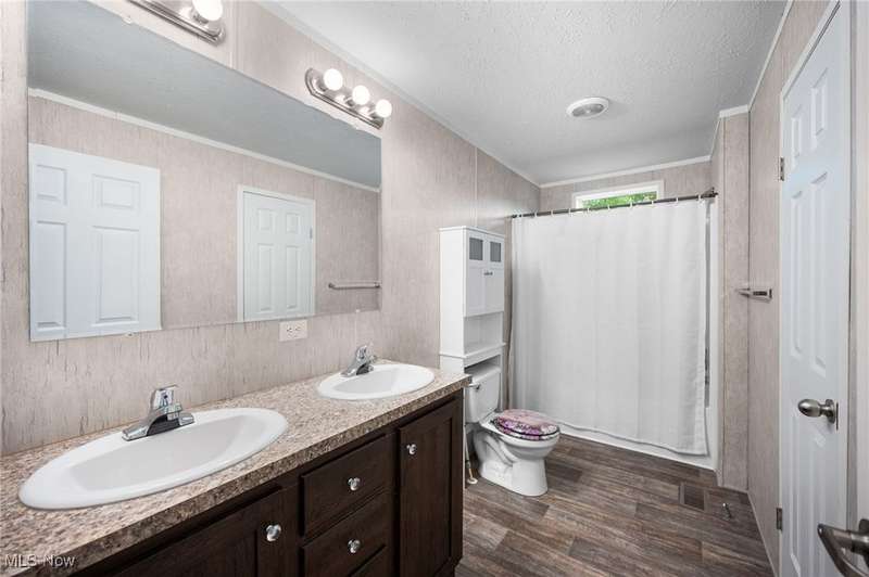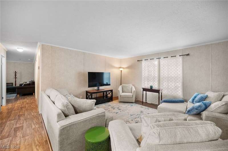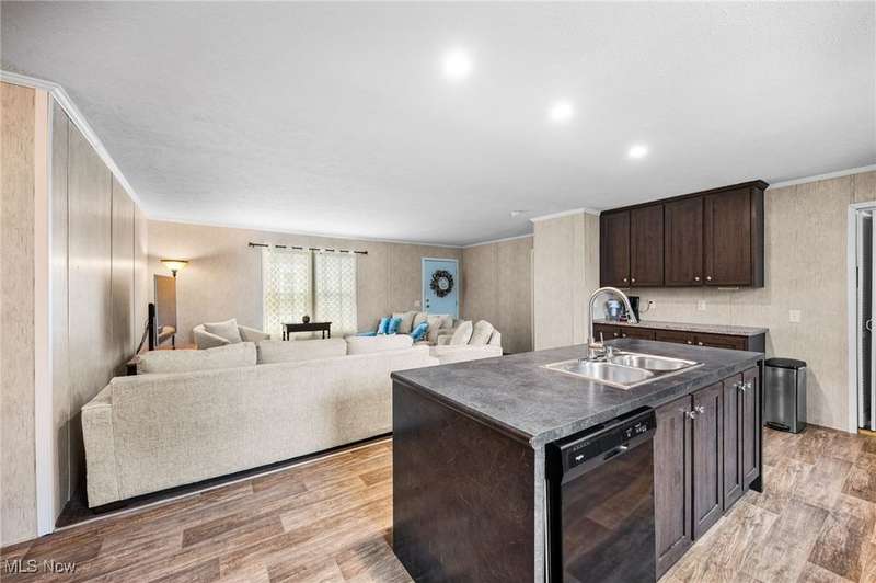 Welcome Home - This 2019, 1568 square feet Champion Sonic home is open and spacious throughout. This home features an open floor plan with a large living room and opens to the fabulous kitchen which has an abundance of cabinets, counterspace and center island. The kitchen has a Samsung refrigerator, gas stove, dishwasher, range hood and double sinks. It offers space for gathering and entertaining. The primary suite is spacious and has a large walk-in closet, separate bath with double sinks and linen closet. There are two additional bedrooms and full bath on the opposite side of the home along with a wonderful family room. The laundry room is off the kitchen; it has a Samsung washer & dryer that will remain with the home. There is a door in the laundry that leads to the side of the home. This home has a large deck, two parking spaces in the driveway and a wonderful newer shed. This home is in close proximity to highways, schools, shopping and restaurants.