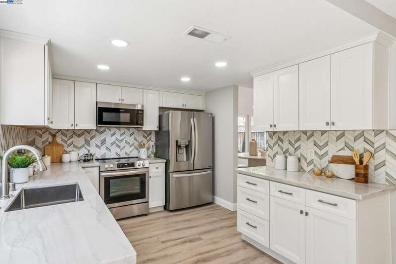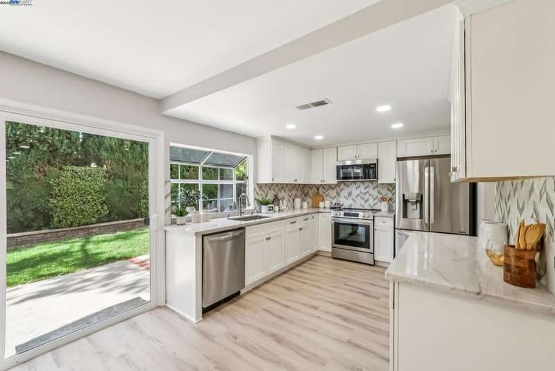 Pristine Warm Springs home with beautiful upgrades! This light-filled residence boasts an open-concept design with high ceilings that enhance the sense of space throughout. At the heart of the home lies a brand-new gourmet kitchen featuring sleek stainless steel appliances, modern cabinetry, and elegant finishes that flow seamlessly into the spacious family room—perfect for both everyday living and entertaining. Enjoy the convenience of a full bedroom and 1/2 bathroom on the main level, ideal for guests, multigenerational living, or home office. The layout is thoughtfully designed, offering an effortless flow from room to room while maintaining a sense of warmth and connection. Every detail has been carefully curated, from the brand-new flooring and updated lighting to the remodeled luxury-style bathrooms that provide a spa-like retreat. Each generously sized bedroom offers spacious closets and comfortable proportions, providing flexibility for families of all sizes. Additional highlights include a finished garage that adds both utility and storage, a cozy fireplace for cool evenings, & central heating. Step outside into your own private backyard oasis, beautifully landscaped yard. Top rated schools & commuter friendly.