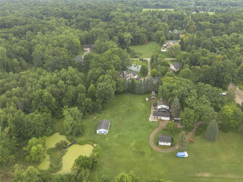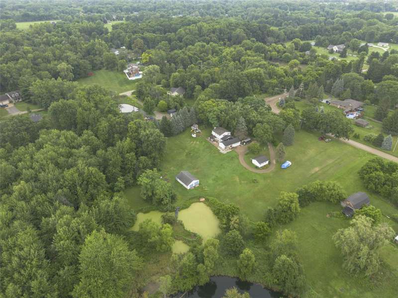 5 Peaceful Acres!!! Perfect combination rustic charm and nature, with plenty of space for gardens and backyard gatherings. Endless possibilities with the outbuildings. Great space of workshop and storage for toys. Seller is willing to the 1946 Case tractor that runs good for grading the driveway. New Roof and Well Pump in 2025. Solid home waiting for your personalization. Primary Suite with walk in closet and bath. Martindale Rd is closed for Bridge repair. Pictures were taken prior to new roof installation. Take 11 Mile to Martindale to house.