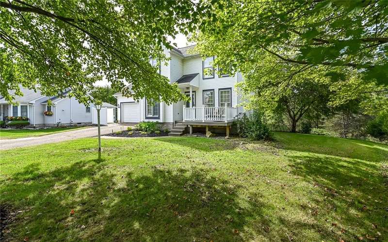 Don't miss out on this updated home nestled on scenic .55 acre lot at the end of a cul-de-sac. Livingroom features cozy gas fireplace. Inspire your inner chef in fully equipped kitchen w/large center island & plenty of storage & counter space. Easy access to 2 car garage right from kitchen. Perfectly proportioned dining room is great for family & friend gatherings. Oversized primary bedroom will easily fit a king sized bed & features vaulted ceiling, fan w/overhead lighting, walk in closet plus 2nd closet. Ensuite bathroom w/large ceramic step in shower, seat & skylight. 2nd bedroom features ceiling fan w/overhead lighting & closet w/built in organizer. 3rd bedroom is currently being used as dressing room but can easily be converted to bedroom. The huge covered deck is the perfect space for grilling w/steps to access yard. Stone patio w/firepit and tree lined private back yard make this home an entertainers delight. Basement is a blank canvas. ready for your personal touches.