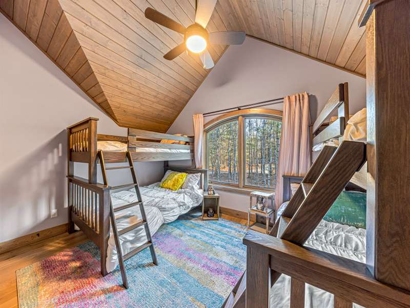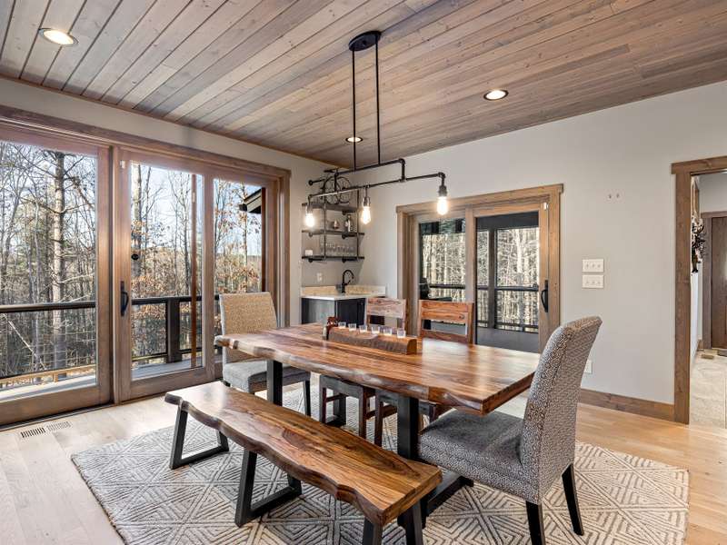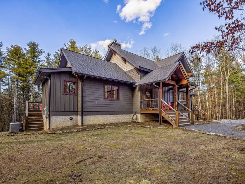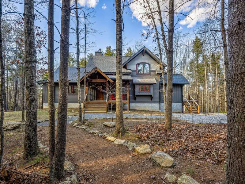 Located just 2.5 miles from DuPont State Forest! Built in 2019 this stunning Moss Creek design home blends quality craftsmanship with a warm, inviting feel. With 5 bedrooms and 3.5 baths, there's plenty of space for everyone. The Great Room features soaring wood-clad cathedral ceilings, rich hardwood floors, and a breathtaking floor-to-ceiling stacked stone fireplace?perfect for cozy evenings. Step onto the screened porch or expansive decks and enjoy the serenity of your 6+ acre property. The lower level offers a den, additional bedrooms, a full bath, and an incredible hybrid gym/rec room complete with a sauna?a perfect retreat after a day of outdoor adventures. Enjoy a mile of trails on this property, a large storage room and storage shed. Lake access comes with this offering on a 28 Private lake and the 6 acres backs onto 1,000 acres of conservation lands. Whether you're looking for a peaceful escape or a home base for hiking, biking, or paddling this is a fantastic opportunity.