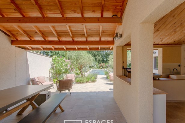 This exceptional refuge, brilliantly redesigned by an architect, combines elegance and comfort. Behind its discreet facades, the villa reveals 210 sqm of living space, spread over two levels. A light-filled living room with a welcoming fireplace for the low season offers a warm setting for shared moments. The equipped kitchen, designed for food lovers, promises delicious culinary inspiration. Five generously sized bedrooms, each with its own bathroom and toilet, invite you to relax in complete serenity. Outside, the mild Mediterranean climate finds its perfect setting. A fitted summer kitchen opens onto the magnificent 15-meter swimming pool equipped with a heat pump, offering a promise of relaxation. In the basement, a 36 sqm space could become a games room or home cinema, depending on the wishes of its future occupants.
