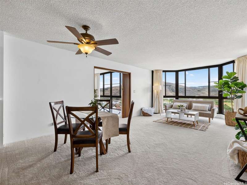 Welcome to Country Club Plaza—where comfort, convenience, and views meet! This well-maintained 2-bed, 2-bath residence offers an open layout that invites natural light, refreshing cross-breezes, and enchanting views from every room. Featuring refreshed carpet, 2 parking stalls, and fire sprinklers, this home offers peace of mind & move-in ready comfort. Enjoy resort-style amenities including a pool, BBQ grills, sauna, ample guest parking, 24-hour security, and secured entry. This pet-friendly building welcomes your four legged companions & boasts 100% hurricane insurance coverage as an added benefit for your protection. Conveniently located near Kaiser and Tripler Hospitals, Honolulu International Airport, military bases, schools, shopping, and freeway on/off ramps. Experience Honolulu living with the tranquility & convenience that Salt Lake is known for!