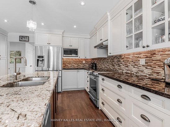 Welcome to 85 Franmore Circle! This spacious 5-bedroom home offers over 3,400 sq. ft. of living space in the heart of prime Thornhill. The renovated kitchen features ample cabinetry and storage, granite countertops, and a large island with double sink and breakfast area, with direct walk-out to the backyard. Additional highlights include a brand-new stair runner, renovated upstairs bathroom, smooth ceilings in the dining room, and a bright, open foyer with wall paneling leading up the stairs. Step outside to your private backyard oasis, complete with a gated pool area (new pool liner 2025, new pump 2024, pool heater not in working condition). The premium pie-shaped lot offers exceptional privacy with mature trees. Conveniently located near Beth Avraham Yoseph of Toronto Synagogue, Garnet A. Williams Community Centre, shopping, public transit, parks, and excellent schools including Yorkhill Elementary, Thornhill Public School, Netivot Hatorah Day School, and Kayla's Children Centre and more. ** Being sold in As-is, where-is condition. No warranties included **.