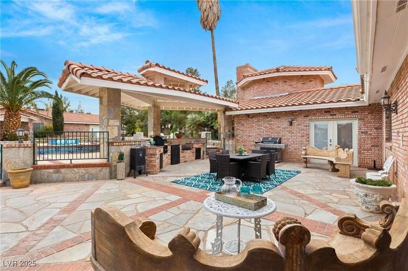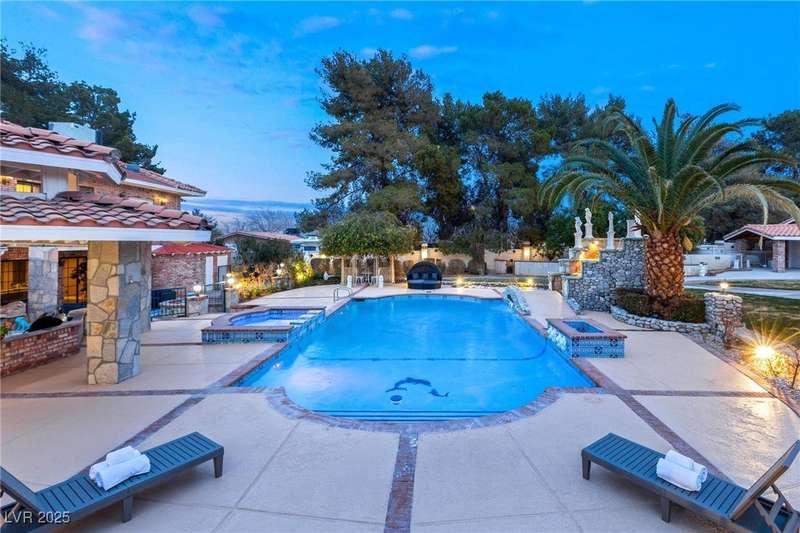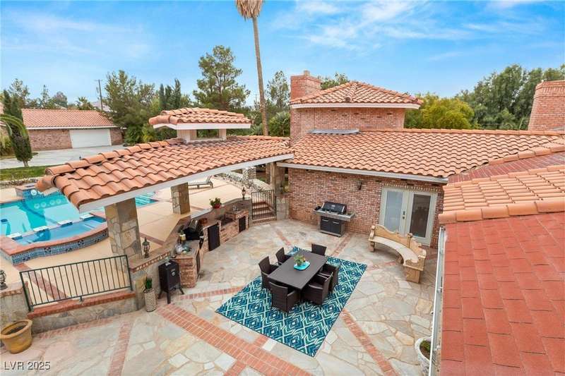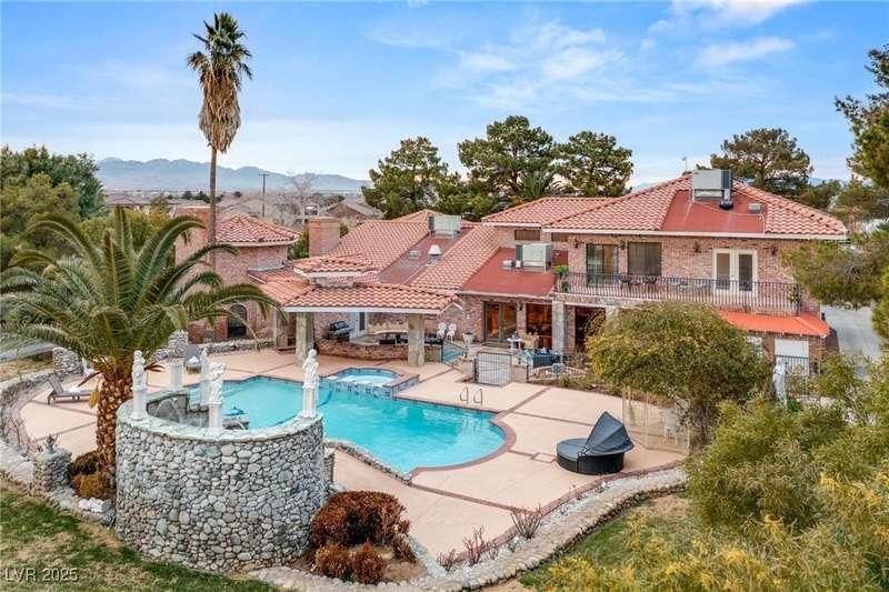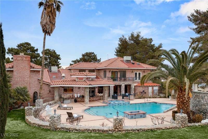 CUSTOM PRIVATE & GATED, 8,078 total sq. ft. home,remarkable 4 bed/4 bath estate set in a highly sought-after area with NO HOA! Guest house has 3 bed/3baths. Arrive through a grand circular driveway surrounded by mature landscaping, offering both privacy & timeless curb appeal! Step inside to find a spacious floor plan that combines rustic charm & modern comfort, highlighted by exquisite architectural details throughout! The gourmet kitchen is a true centerpiece, featuring dual-tone cabinetry, stainless-steel appliances, a garden window, island w/ electric stove & striking hood above. Retreat outdoors to your private resort-style backyard, complete w/ a sparkling pool & spa, tranquil waterscaping, multiple areas to lounge & sunbathe, a sunken patio w/ a cozy firepit & a built-in BBQ area for unforgettable gatherings! This rare property blends elegance, comfort & functionality in every corner! Don’t miss your opportunity to own this timeless home that offers a lifestyle unlike any other!