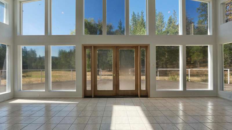 Country living on 12+ acres. This 3,102 sq. ft. multi-level home sits on 12.18-acres & offers 3-bedrooms & 3-bathrooms with plenty of space & potential for updates. Built in 1992 on a concrete block foundation, the home features a large flex space entry that leads into the kitchen, dining area & living room. The kitchen and dining area both have tile flooring, and the dining space is highlighted by a wall of windows inviting in natural light and a staircase leading to the upper-level bedrooms. The living room, open to the kitchen & dining area, features a cozy gas fireplace. A separate main entry also provides access to all bedrooms and bathrooms, including a primary suite with its own gas fireplace and a jetted tub in the bathroom. The property includes a metal roof, animal stalls, pasture, a detached 4-bay garage with 30-ft RV parking in the center, a shared well with a strong flow history & septic system. It needs some TLC but has solid bones and great potential.