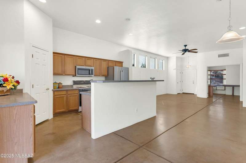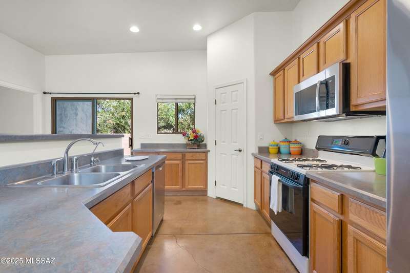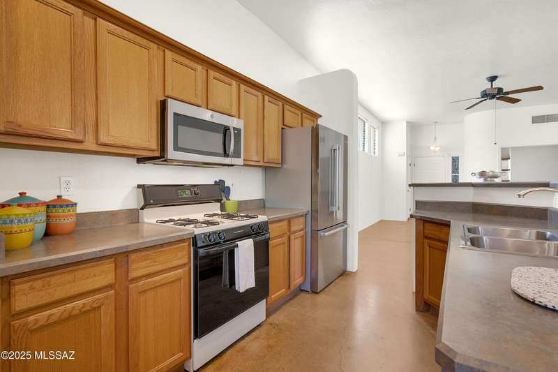 Southwestern charm and unbeatable convenience in Barrio Norte. Just 2 miles from the University of Arizona! This 3-bedroom, 2-bath home with a 2-car garage is ideal for UA students, faculty, or anyone seeking a great investment close to campus or the Loop. Concrete floors reflect true Southwestern style and are easy to maintain. The third bedroom is currently converted into a home office and includes a built-in desk that can stay or be removed. Barrio Norte is a small, quiet neighborhood with one way in and one way out, offering a sense of privacy while remaining close to The Loop, the Mountain Avenue bike path, and plenty of restaurants, coffee shops, and shopping. A rare opportunity for comfort, charm, and location, all in one.