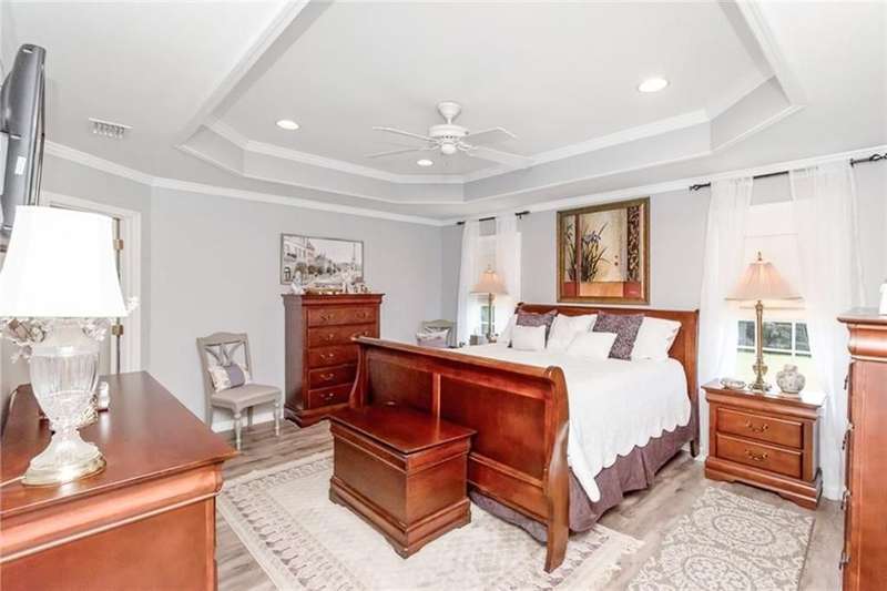Immaculate 4 bedroom, 2.5 bath home with an open concept, split bedrooms offering soaring smooth ceilings, loads of crown molding throughout. Custom built by Mark Lockard, this home has all the upgrades like custom cabinetry, granite countertops, marble bath and shower surrounds, corner fireplace and double tray ceiling accents. There is also a WHOLE HOUSE GENERATOR, gas water heater (2024), MERV 13 filtered HVAC REME Halo air purification system with all ductwork replaced in (2021) and coil replaced in (2024). (all improvements per seller)The kitchen offers stainless appliances, a large breakfast bar, eat-in dining area and huge/walk-in pantry. The primary suite boasts upgraded flooring, a huge bath with 2 large vanities, linen closet, dual walk-in closets, separate water closet along with nice shower and jetted corner tub. There are 3 large guest rooms with walk in closets, and one offers a tray ceiling, and separate entrance to the back porch and lots of natural light. You'll love the extra-large, well landscaped backyard, including covered porch and expansive patio too. Also includes 2 gates, with one double gate and access to the driveway for boat storage or easy access and also a side entry, 2 car garage. The termite bond with Wayne's has been renewed through July 2026. (per seller) All measurements are approximate and not guaranteed, buyer to verify.