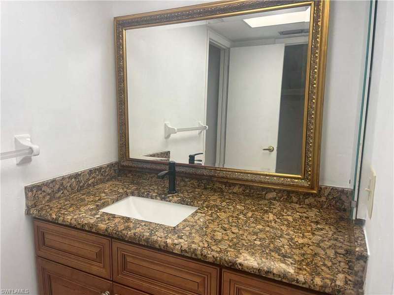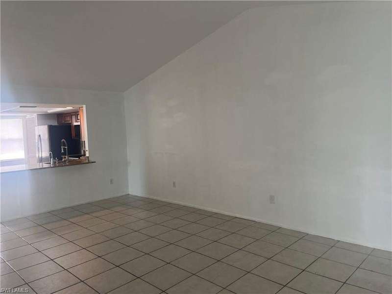 Look at this price! This is a lovely neighborhood, south of Cape Coral Parkway in a nice quiet building with a swimming pool. Spacious kitchen has granite countertops, beautiful wood cabinets, stainless-steel appliances and breakfast bar. The large great room has vaulted ceilings and sliding doors to access the screened lanai. The primary bedroom also has access to the screened balcony, an en-suite bathroom and big walk-in closet. The guest bedroom and bathroom are in another hallway for privacy. Relax on your screened Balcony or down by the community swimming pool! Close so shopping, restaurants, downtown Cape Coral and not far from the yacht club beach.