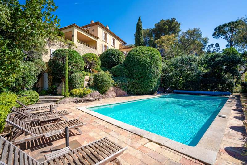 This elegant relatively recent property nestled in leafy grounds in the immediate vicinity of the beaches and the centre of Rayol-Canadel-sur-Mer commands an open view of the sea and the surrounding hillsides. It includes a near 300 sqm main house with five bedrooms including near 50 sqm suites each opening onto terraces commanding superb panoramic views, as well as a self-contained 2-bed annex house ideal for family and friends. With a superb swimming pool. Garage.