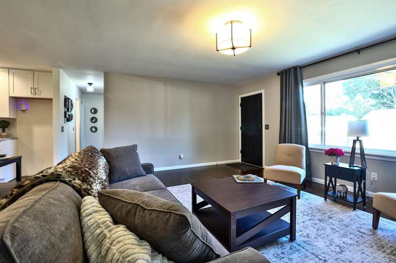 This meticulously fully renovated, move-in ready, home is sure to impress. From top to bottom, no space is left undone. You'll notice the attention to detail with workmanship in the trim work, a shiplap feature wall, time-period lighting, sliding bookshelves reveal a custom pantry, high-end tile, bathroom tile accents and high-end finishes. A bright main level with freshly painted walls and refinished hardwoods, and a finished lower level with new LVT flooring and an extra flexible living space. The stunning kitchen boasts granite counters, new cabinets, modern appliances, and a pantry. Enjoy a private, fenced yard with a covered patio, fire pit, and beautiful new low-maintenance landscaping. Set on a quiet no-outlet street near schools, this home also offers peace of mind with a new roof, gutter guards, newer furnace and water heater, updated plumbing and electrical, and a full waterproofing system with sump pump. Not to mention your very own two-car tandem garage to seal the deal.