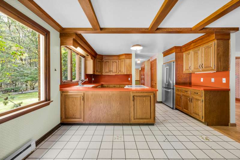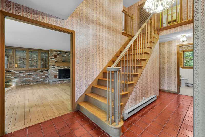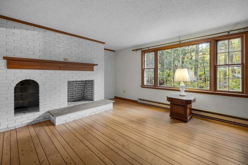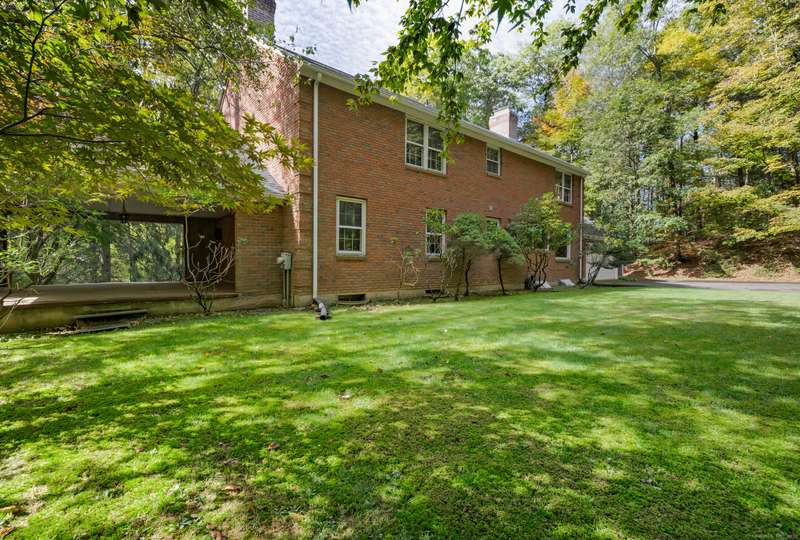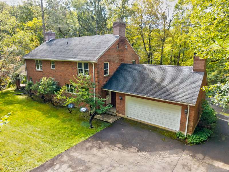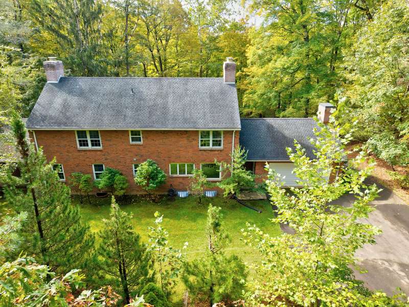 Welcome to Mount Carmel! One family home, first time offered. This stately brick Colonial offers timeless curb appeal and over 2,700 square feet of living space, featuring 4 spacious bedrooms, 2.5 baths, and a 2-car attached garage. Hardwood floors run throughout the home, including a living room with a wood-burning fireplace. The eat-in kitchen features exposed beams, a pantry, and a large window overlooking the private, wooded backyard. The formal dining room and cozy family room, with a second wood-burning fireplace and built-in hutches, offer wonderful spaces for entertaining or relaxing. A French door leads to a generous patio complete with a built-in fireplace; ideal for outdoor gatherings, with steps that connect both the front and back yards. All four bedrooms are located on the upper level, including a primary with a walk-in closet and full bath. A large, unfinished basement with wood stove provides ample storage. Sited on a secluded 2.82 acre lot surrounded by mature trees an
