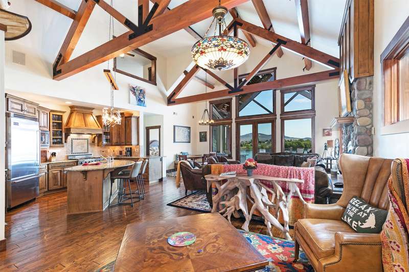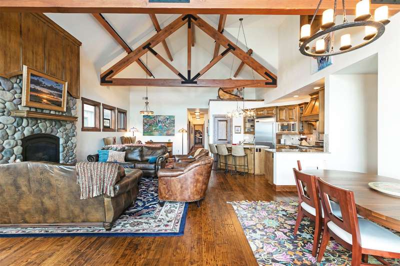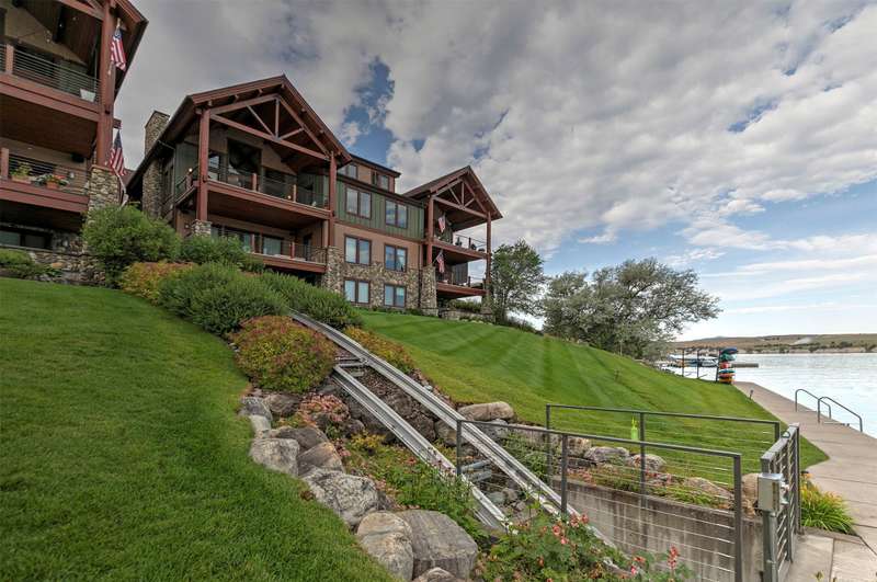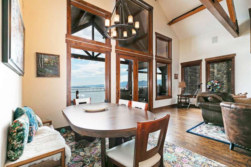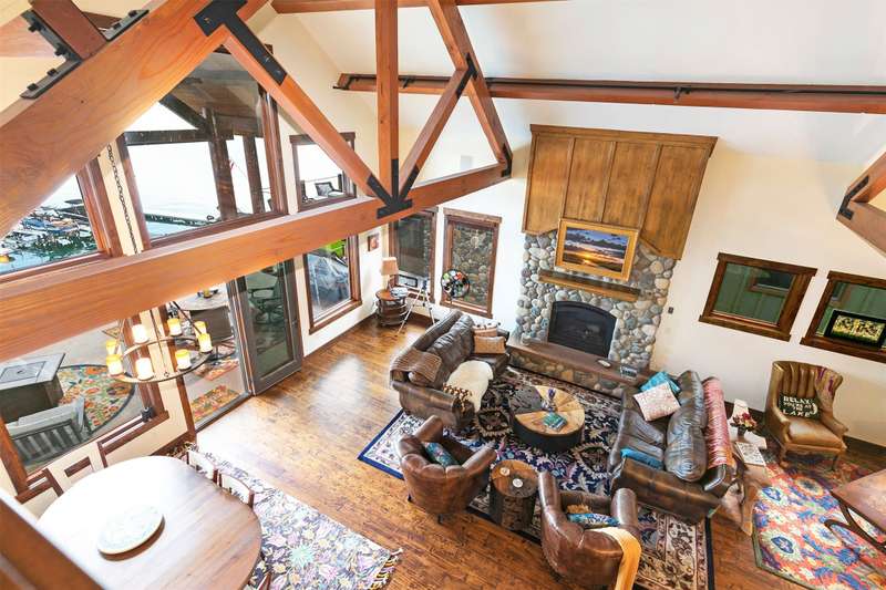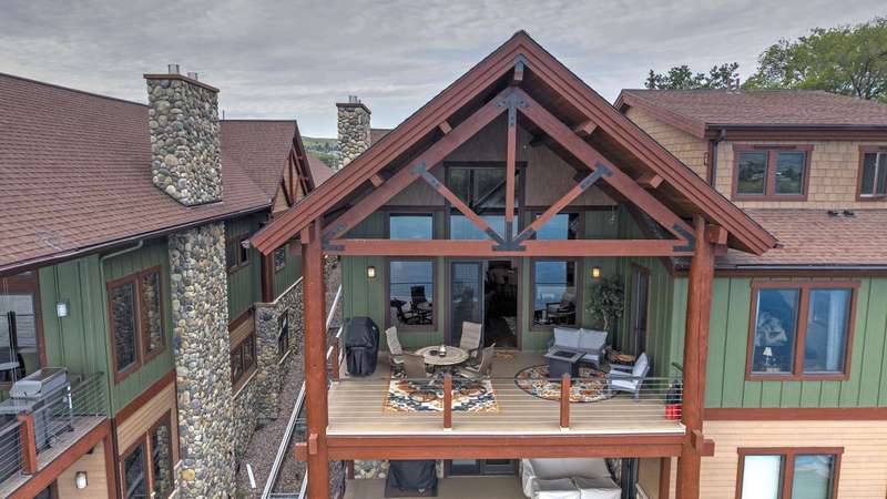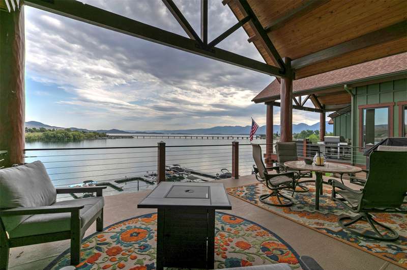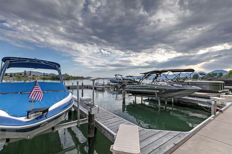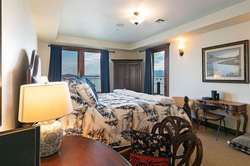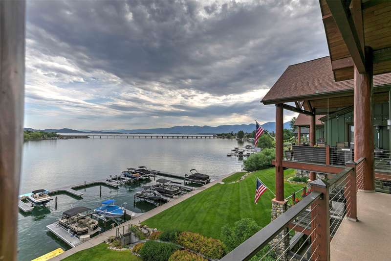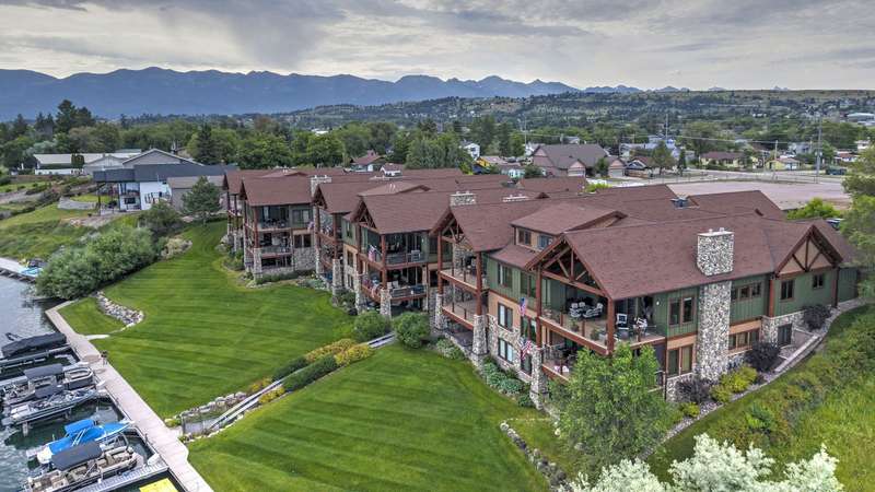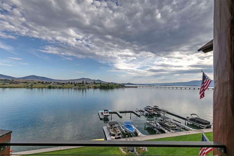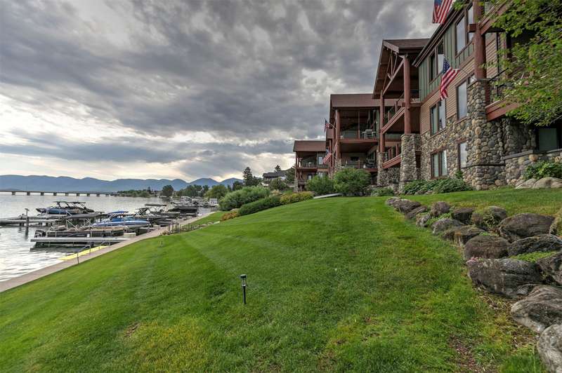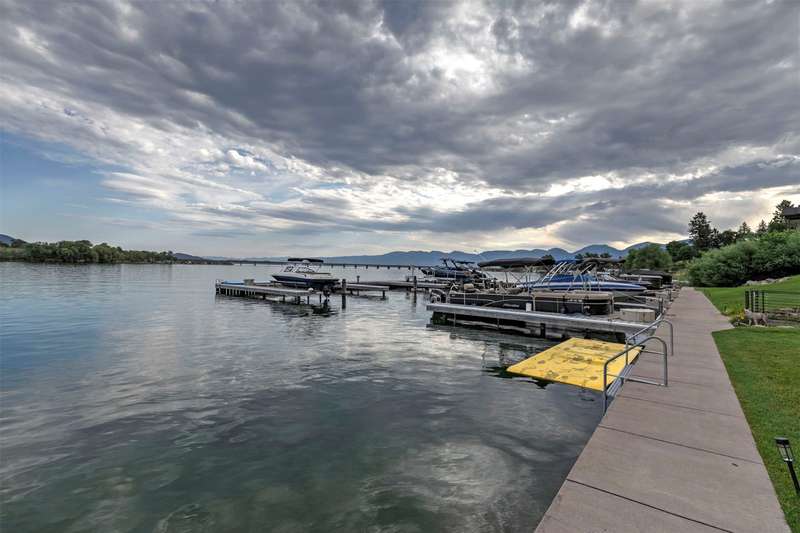 Luxurious Waterfront, Top-Floor Condominium with Zero-Step Entry, Vaulted ceilings, and Panoramic Views. Vaulted Ceilings with Exposed Beams provide an abundance of natural light. Enjoy direct access to Flathead Lake with a deeded boat slip and lift. The Gourmet Chef's Kitchen is outfitted with top-of-the-line Viking appliances, granite countertops, and custom cabinetry. The covered deck with vaulted ceilings provides an ideal setting for dining or simply soaking in the stunning surroundings. Each of the 4 bedrooms has private, luxury en suites. This property epitomizes Montana living at its finest, blending luxury, comfort, and natural beauty. Elegant Living Area: Relax by the river rock fireplace in the spacious great room, highlighted by hard wood floors and expansive windows that flood the space with natural light. - Enhanced Privacy and Security: Situated on the top floor, this unit offers increased privacy and a heightened sense of security, providing peace of mind. - Unobstructed Panoramic Views: Enjoy uninterrupted, sweeping views of Flathead Lake and the surrounding mountain ranges. - Luxurious Primary Suite featuring a spa-like en-suite bathroom and enormous closet space. - Craftsman Architecture - Ample Parking: Benefit from a two-car garage and an overflow parking area suitable for boats, trailers, and RVs. - Recreational Paradise: Situated in a region renowned for fishing and hiking, outdoor adventures await just beyond your doorstep. - Convenient Location: A short stroll takes you to Polson's vibrant city center, offering dining, shopping, parks, a farmers' market, fireworks show, rodeo fairgrounds, and more. - Furnished: Move in effortlessly with beautifully selected furnishings that complement the home's aesthetic. See uploaded documents for list of furnishings included.