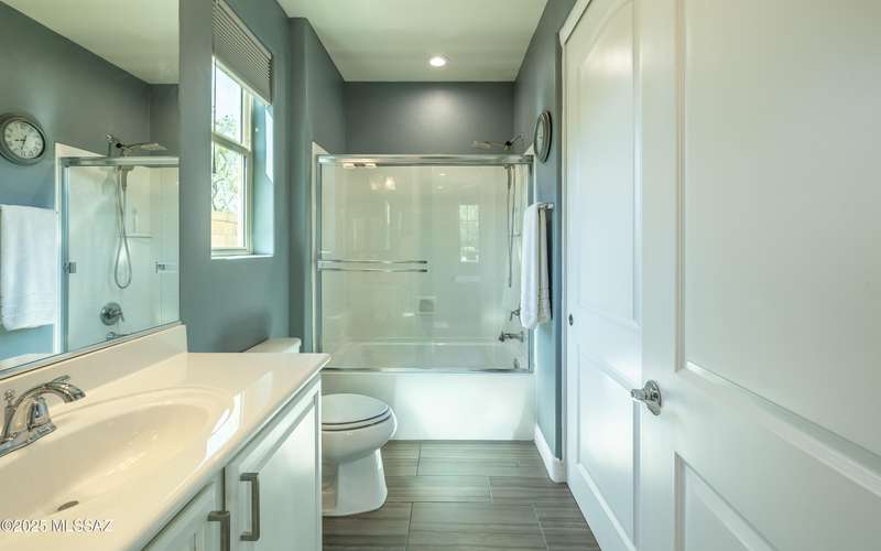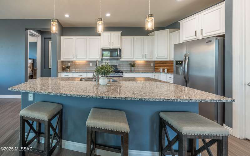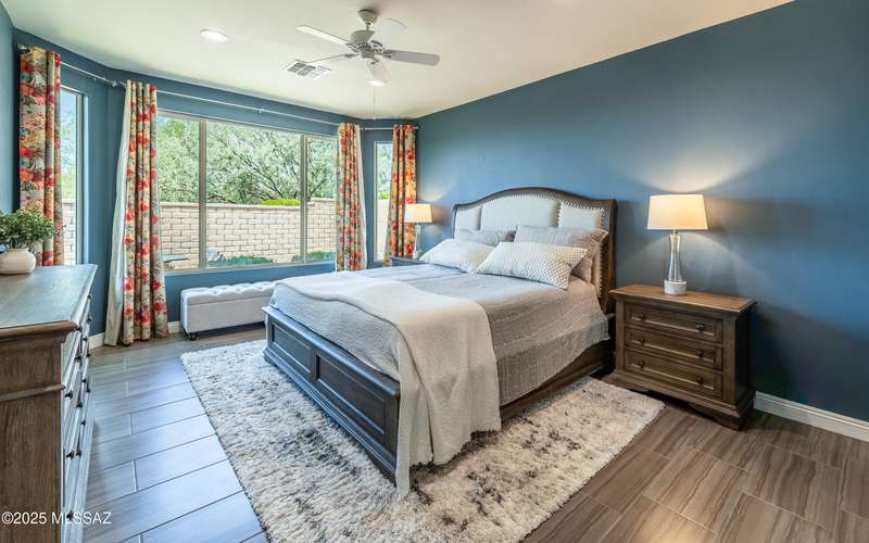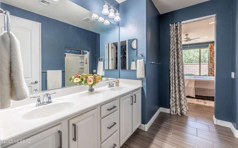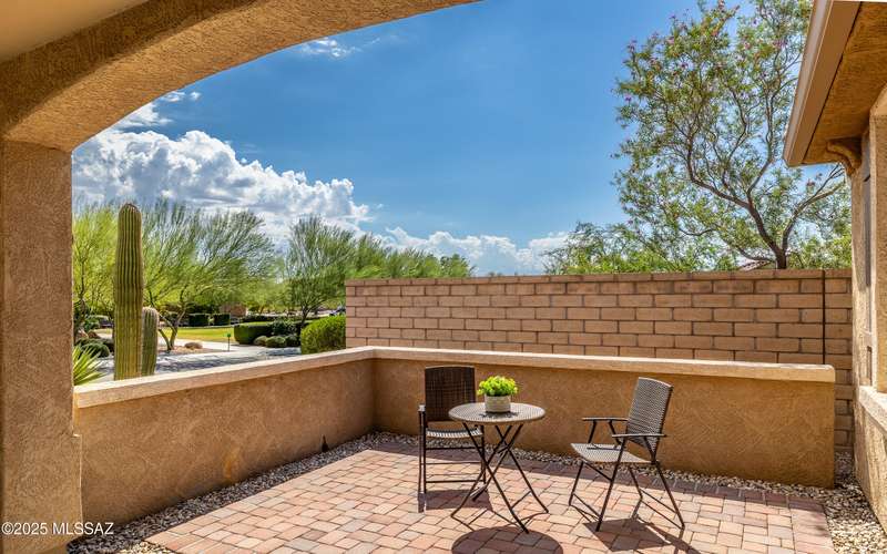 Highly desired modified Sanctuary floor plan - 2 bedrooms + den/bonus room, 2.5 bathrooms plus a 4 ft extended garage. Guest bedroom w/en-suite bathroom. Rare extra powder room option is a great feature! -along w/extra den/office. Situated on a corner lot - much privacy. Gorgeous kitchen w/stainless steel appliances, white cabinets & large beautiful granite island - opens to a grand great room-spacious dining, sliding glass doors to the private patio & peaceful backyard. Other features include all tile flooring, BBQ gas stub, under counter lighting, bay window in master, garage insulation, floor outlet in great room, new custom Kirsch blinds, stylish lighting. Full Laundry Room Remodel: New LG Tower in Hunter Green - new Cabinets/ Butcher Block Counter Top/ Marble Herringbone Backsplash +
