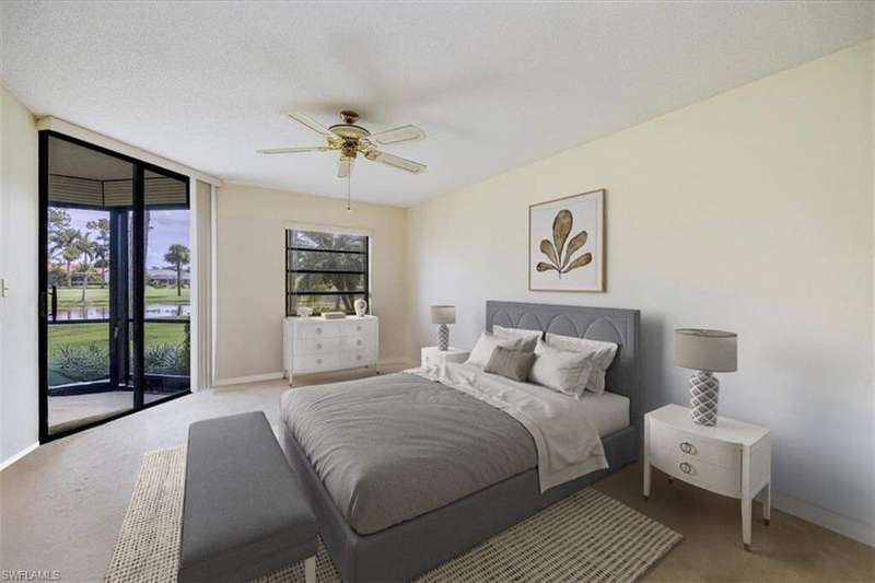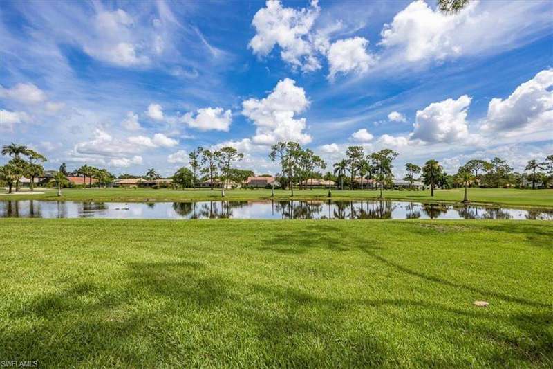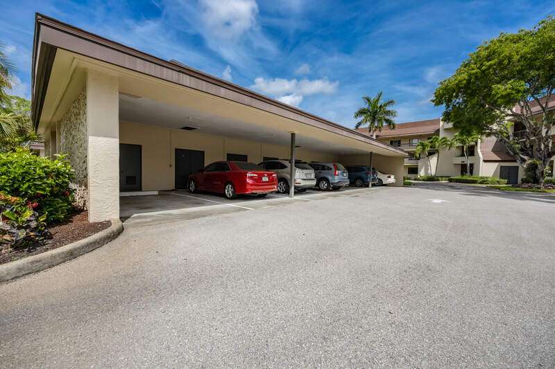 Discover Florida living at its finest in this spacious 1st-floor, 2-bedroom, 2-bath condo in the heart of Lely Country Club! Spanning 1,390 sq ft, this bright and airy residence boasts stunning golf course and pond views from nearly every room, framed by lush banyan trees and natural wildlife. The open split floor plan features a large living room with sliders to a private screened lanai, a separate dining area, and an eat-in kitchen. Convenience abounds with an in-unit washer and dryer, a newer A/C (2021), assigned covered carport, ample guest parking, and an extra-large storage unit. New roofs are scheduled for installation next year. Nestled in a beautifully landscaped community with just 36 units, residents enjoy exclusive amenities, including a private pool and spa, a screened social area with restrooms, and elevator access. Additional perks include a mailbox near the elevator and a spacious storage unit. Perfectly located minutes from Naples' pristine beaches, vibrant 5th Avenue, top-tier restaurants, and shopping, this condo offers unmatched convenience and coastal charm. Ideal for buyers or investors, this original condo is a blank canvas ready to be transformed into a modern dream home. Virtually staged photos provide inspiration for its endless potential. One of the best values in Lely Country Club, this move-in-ready gem delivers the Naples lifestyle you've been dreaming of.