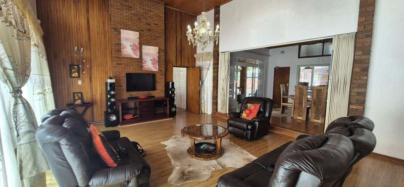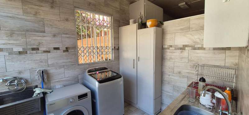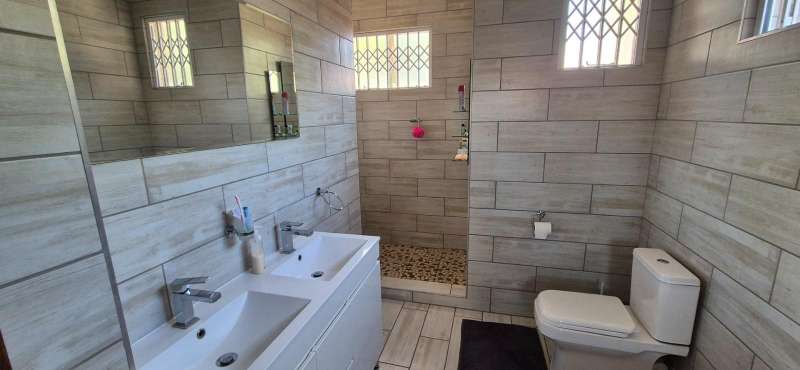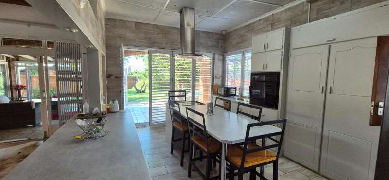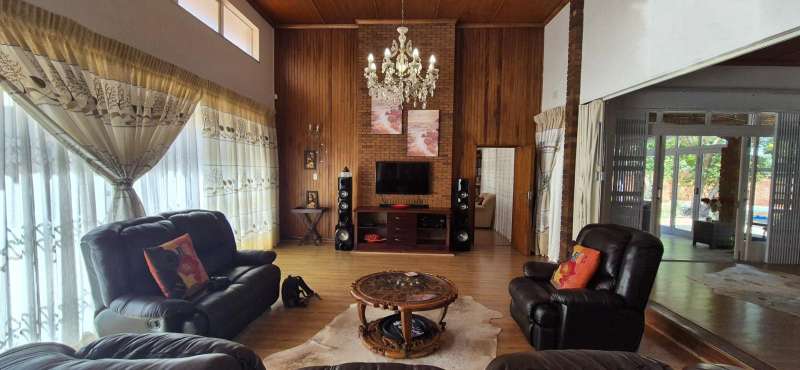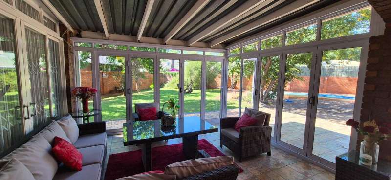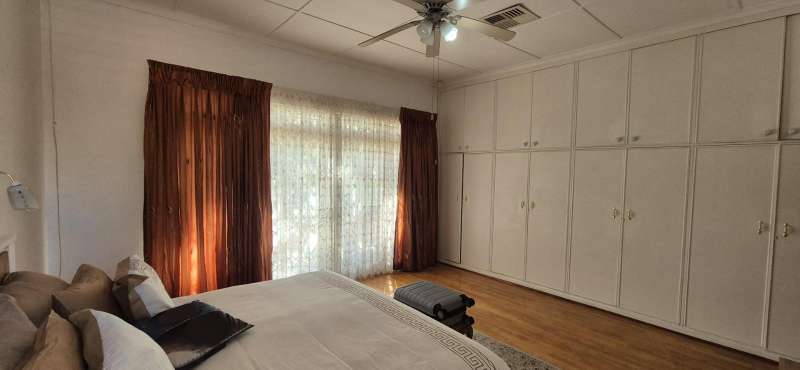 EXQUISITE UPMARKET LIVING Ideal for the buyer who are seeking for space, style and premium quality. Conveniently located near DHS and top English-medium schools. BONUS ?Çó 1 Bedroom Flat ?Çó Outside Guest Room with its own bathroom ?Çó Borehole ?Çó Jo-Jo tank with pressure pump ?Çó fibre internet THIS PROPERTY OFFERS ?Çó 4 Bedrooms with beautiful wooden floors ?Çó 3 Bathrooms. ?Çó Semi-modern open-plan kitchen with a separate scullery ( gas geyser for the kitchen) ?Çó Large open-plan living areas with high ceilings ?Çó Open-plan dining room that flows onto a patio. ?Çó The patio is enclosed with aluminium stacker doors that open onto the pool area. ?Çó Walk-in linen closet. ?Çó Beautiful tree-filled garden with auto irrigation ?Çó Swimming pool ?Çó Double garage for the main house with parking in front, plus an additional single garage for the flat let The Property is fenced and secured with an alarm system Call us to view this Property .