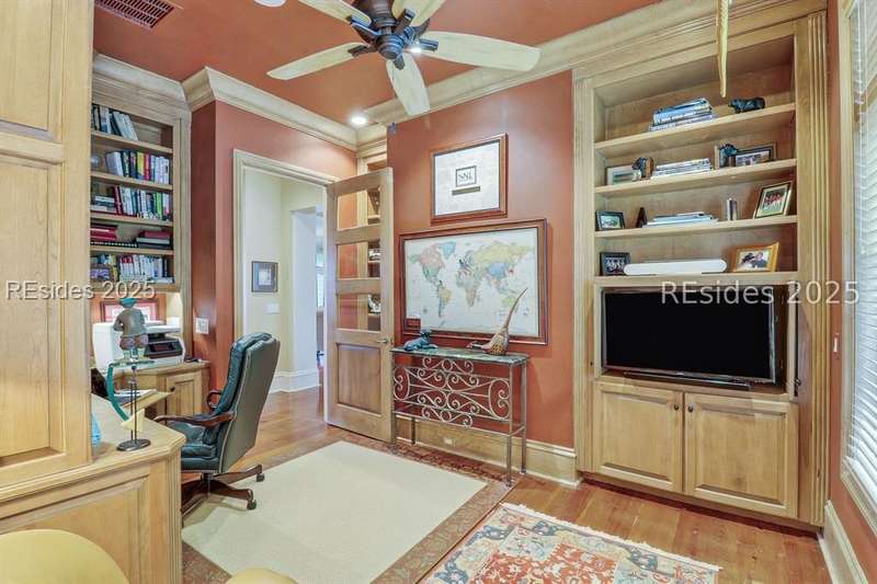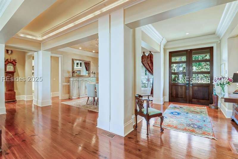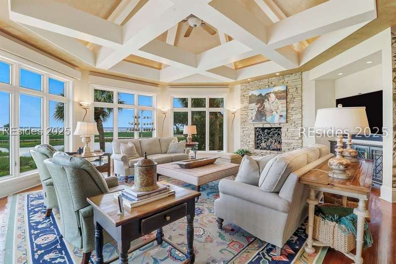 Discover luxury, views, and timeless Sea Pines living in this one of a kind residence built by award winning builder, Dan Lawrence and designed by well-known local architect Jakie Lee. This property offers a rare combination of Lowcountry charm, impeccable quality, and panoramic marsh-to-golf to sound views overlooking the iconic 17th hole of Harbour Town Golf Links home of the elevated PGA RBC Heritage. The interior features of this home are captivating with the extensive trim work, antique heart of pine flooring, custom iron work, and faux finishes by local artisans. Enjoy elegant living and dining spaces. Other features include designer lighting, dream kitchen/family room, impressive first floor owner suite, and spacious guest suites. Outdoor living is unmatched with a heated/chilled pool and spa, covered patio, and lush landscaping-perfect for enjoying the everchanging sunsets while watching golfers, nature, and boating right out your back door. A truly unforgettable Low Country property!