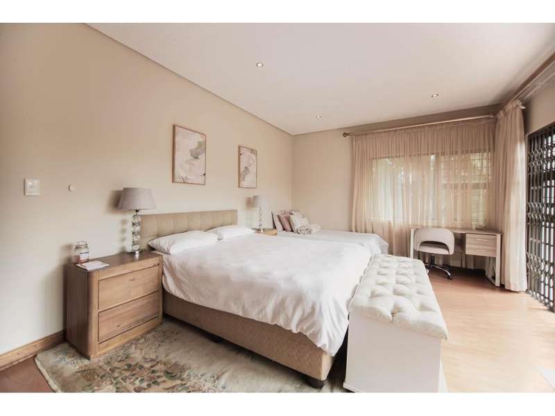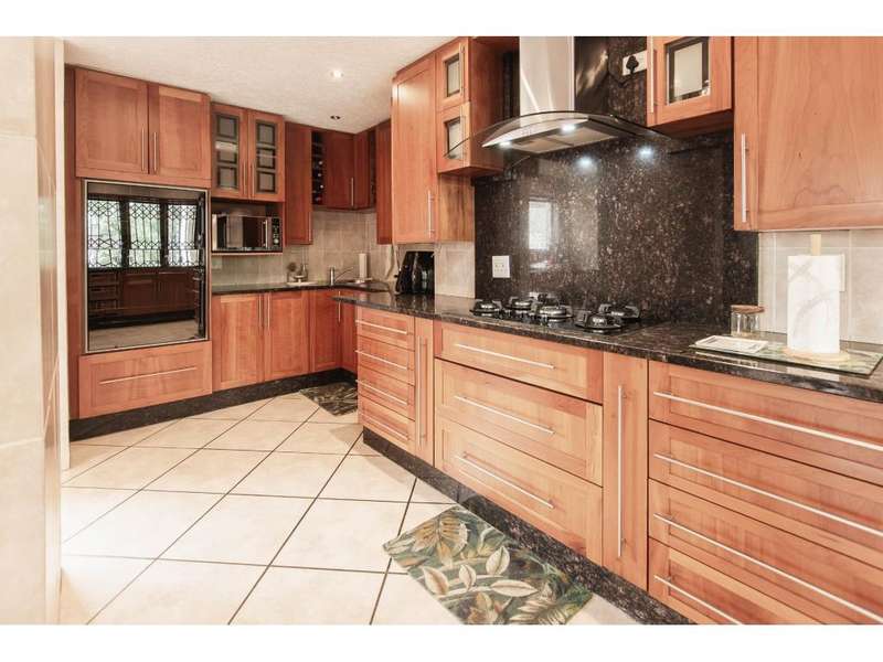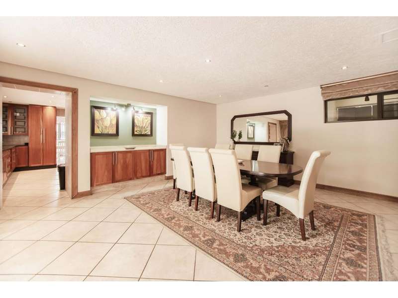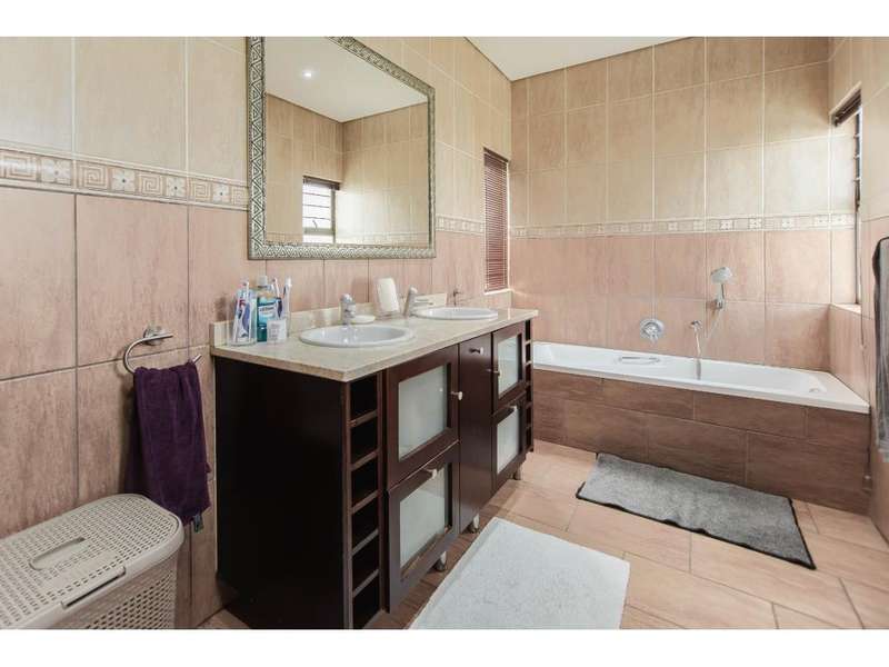 This 5-bedroom, 4.5-bathroom home in Dowerglen Ext 4 offers spacious living areas, including a dining room, bar, kitchen, and lounge/TV room. Stacking doors open to a large patio for indoor-outdoor living. The kitchen includes ample counter space, a scullery, and space for a double fridge and three appliances. The landscaped garden provides a quiet outdoor area. The property features a double garage, double carport, and a 55 KVA generator. Upstairs, five bedrooms and four bathrooms ensure comfort and privacy. Contact us to schedule a viewing. Key Features: 5 bedrooms, 4.5 bathrooms Spacious living areas with patio access Kitchen with scullery and appliance space Landscaped garden Double garage, double carport, 55 KVA generator