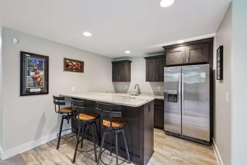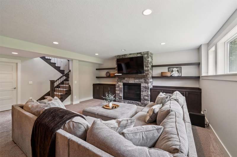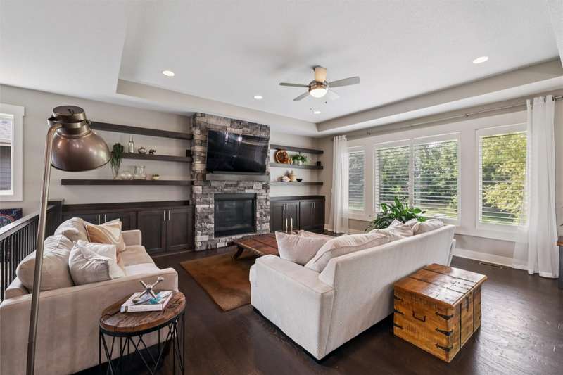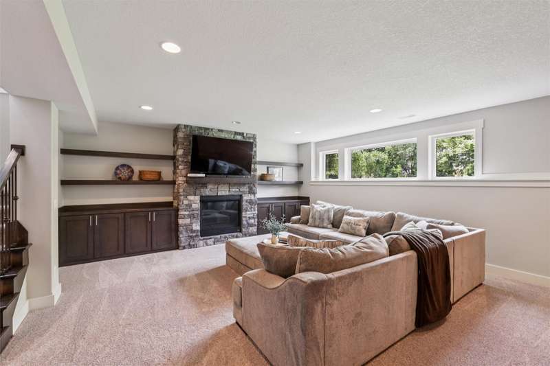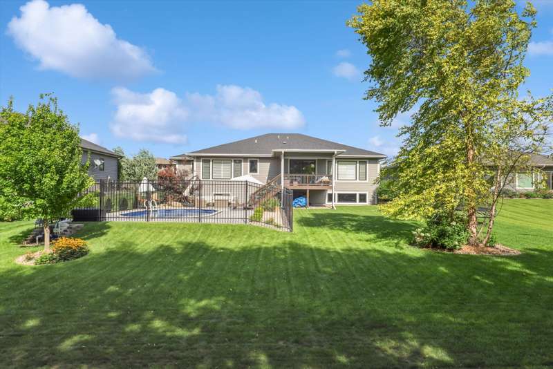 This spacious ranchin sought-after Chesterfield Estates has it allstyle, function, and well maintained. The chefs kitchenis a showstopper, featuring LED under-cabinet lighting, a gas range, wall oven, large pantry, and a generous eat-in space open to the large living room with stunning stone fireplace and quality built-ins, surrounded by abundant windowsfor natural light. The primary suiteoffers serene views of the beautifully landscaped backyard, a luxurious tiled shower, and a spacious walk-in closet. A mudroom off the garage, convenient laundry, and two additional bedrooms & bath completes the main level. The daylight lower levelis perfect for entertaining or relaxing, with a large living room with additional built-ins, gas fireplace, wet bar, two additional bedrooms, guest bath and plenty of storage. Step outside to extend your living space to the covered deck, patio & pool! Enjoy the backyard privacy with theextensive landscaping and a tree-lined lot. This home is filled with extras: Anderson Windows, 2x6 construction, Dual zone HVAC, insulated garage and more!
