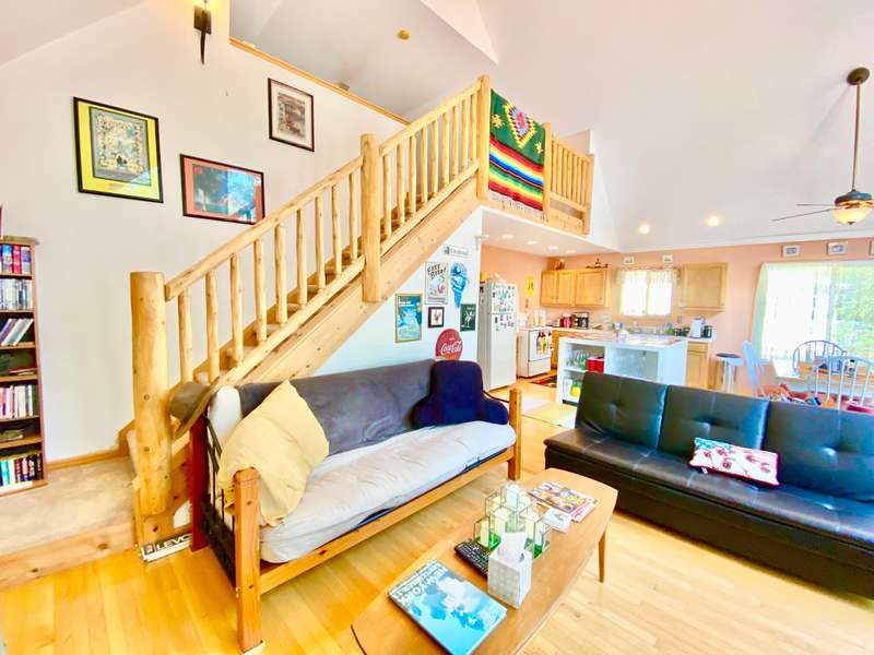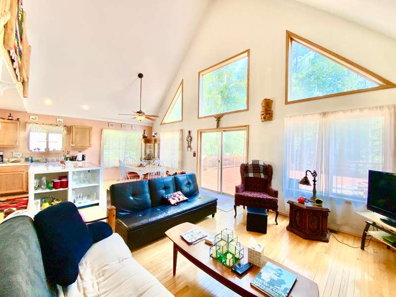 Stunning lakefront home on the scenic shores of Lake James. The views are truly breathtaking. This three-bedroom, 1.5-bath house offers plenty of space. The main bedroom is a loft with its own half-bath. Don't miss out on relaxing on the deck and claiming your own piece of paradise. Lake James is a private lake with many amenities including access to nearby Houghton Lake! The home features an open layout with 20' cathedral ceilings that add to the spacious feel. The great room and kitchen are finished with hardwood floors and overlook the lake. There's a warm fireplace to keep warm by. The home is move-in ready and includes most furniture and decor. Outside, your yard work stays simple perennials. Sit on the large deck with a deck with a cup of coffee or even enclose it for added comfort.