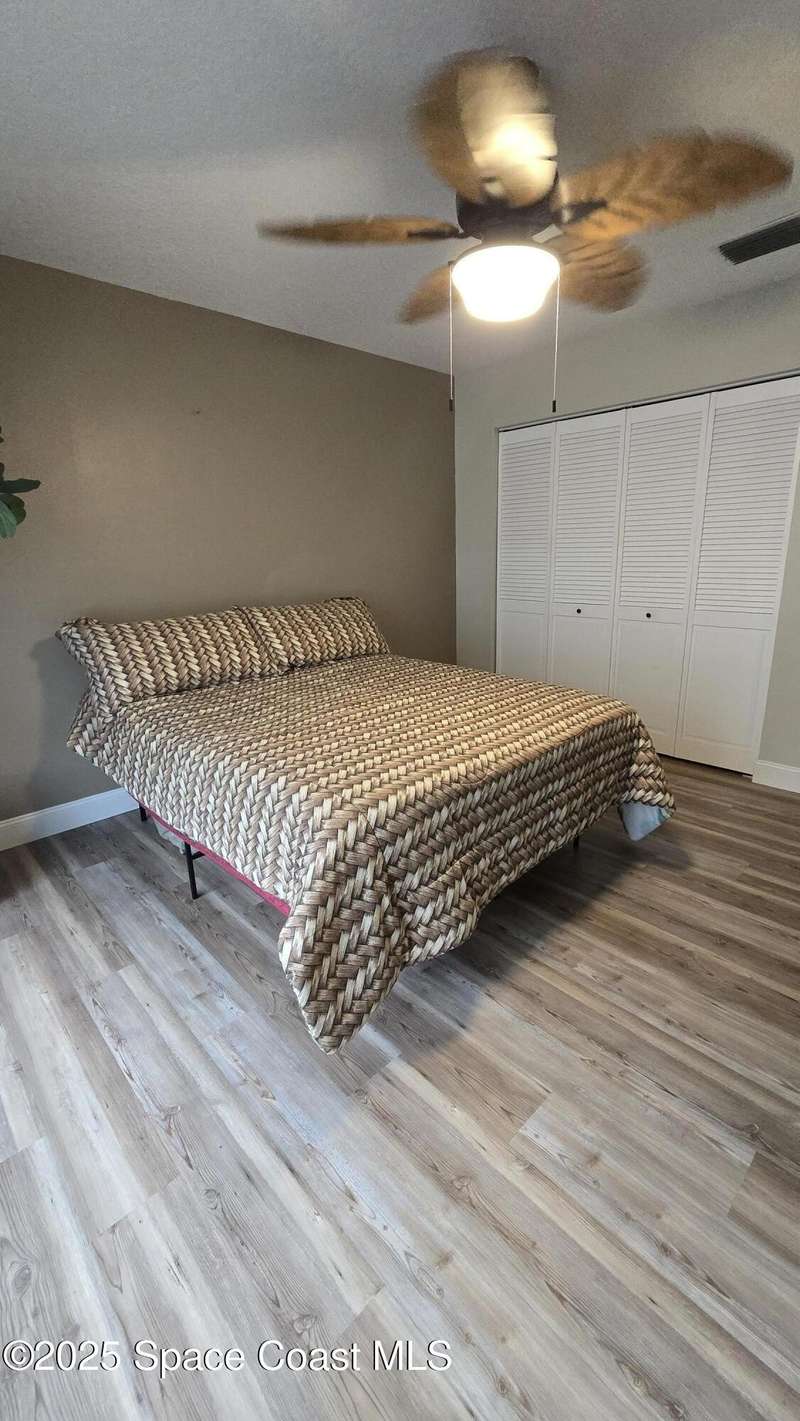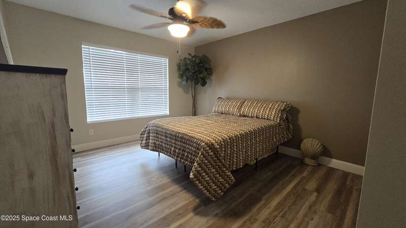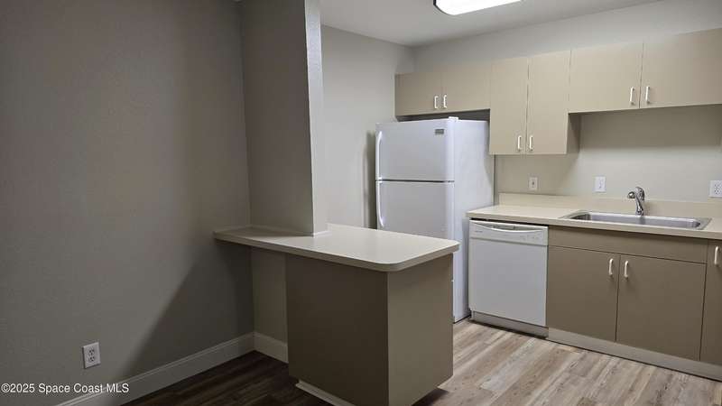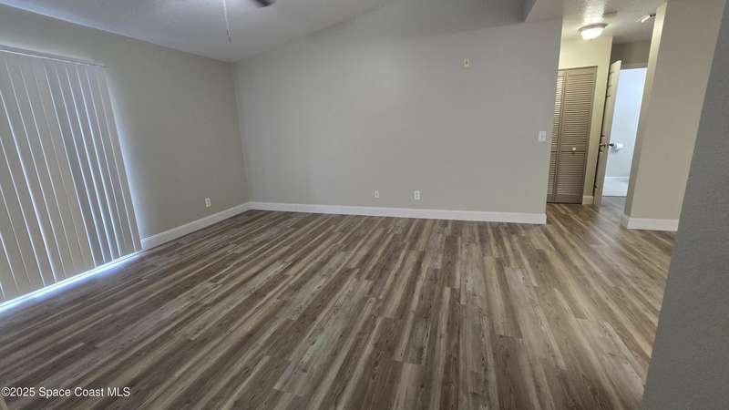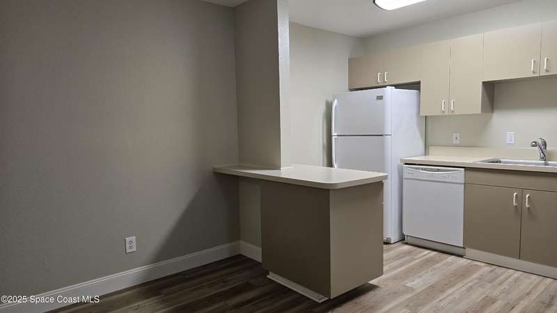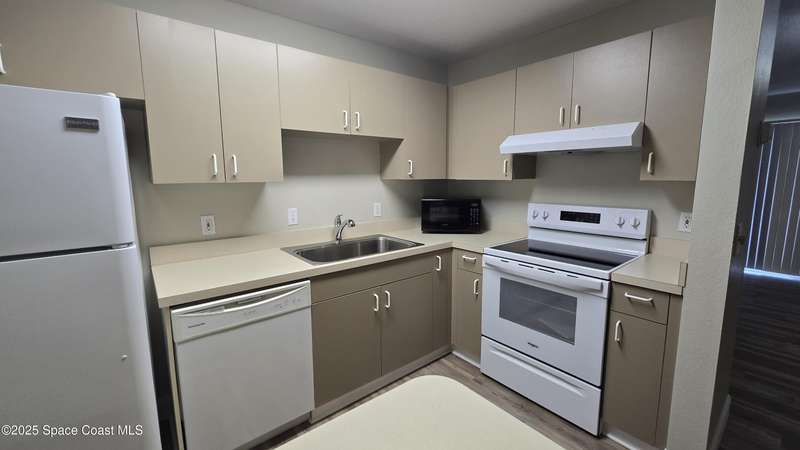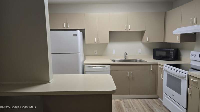 HUGE PRICE DROP! Beautiful 1 bedroom/1 bath with Private GARAGE in Viera East! Remodeled and ready for a new owner! In 2024: New A/C, hot water heater, flooring, interior paint, 5'' baseboards, fans, blinds, electric range, hood and microwave! All interior doors changed from metal to wooden louver doors! My seller's loss is your gain. Community pool, spa, fitness room and clubhouse! HOA Under $200/month! Turn key Gem !!