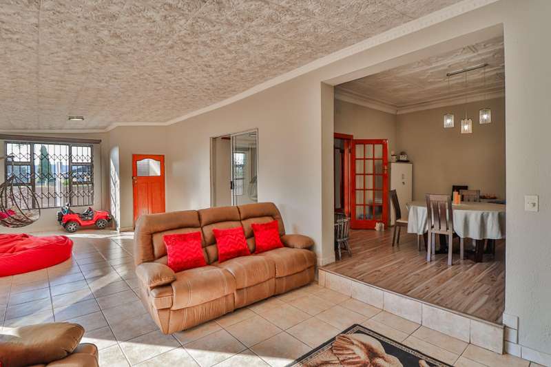 Entertain guests effortlessly in the tiled open plan lounge and family room, featuring stacking doors that lead to the front paved entertaining area. The adjoining dining room offers a perfect setting for intimate gatherings or family meals.