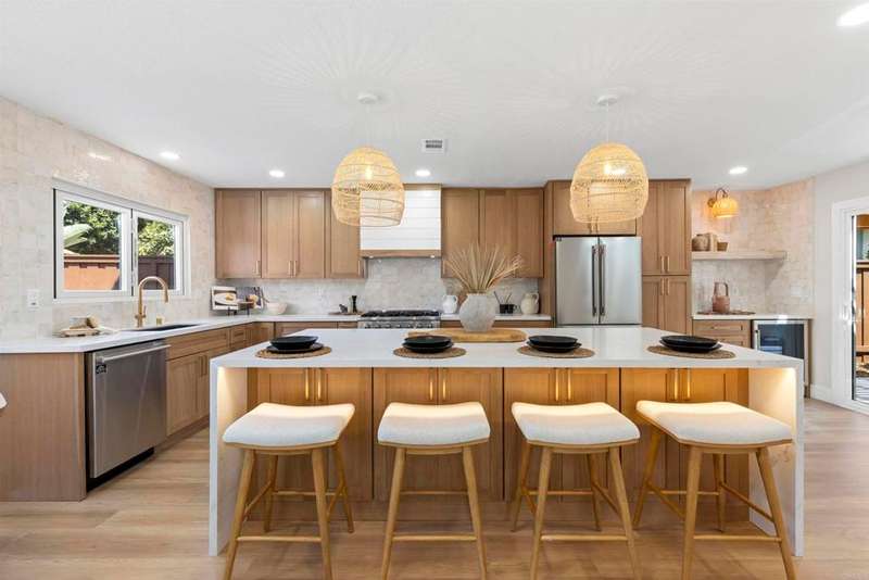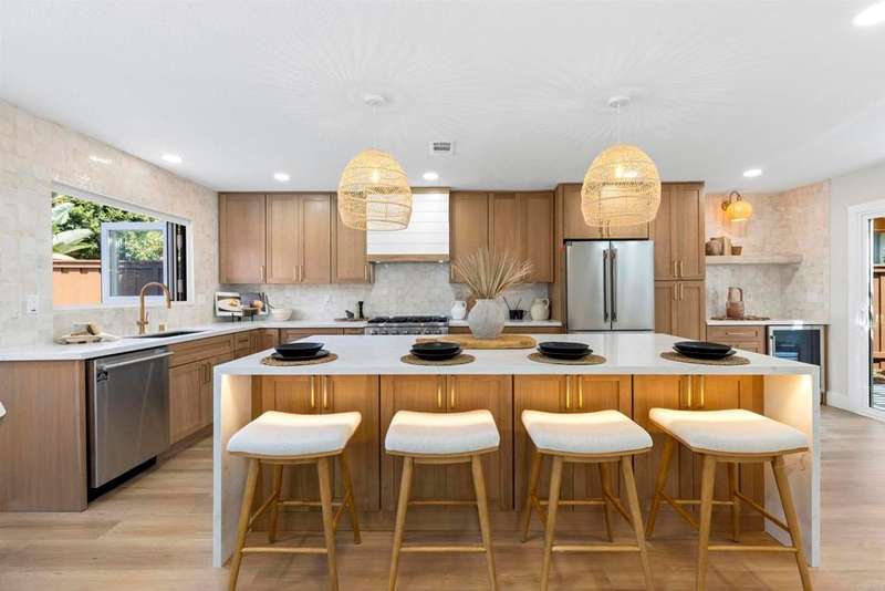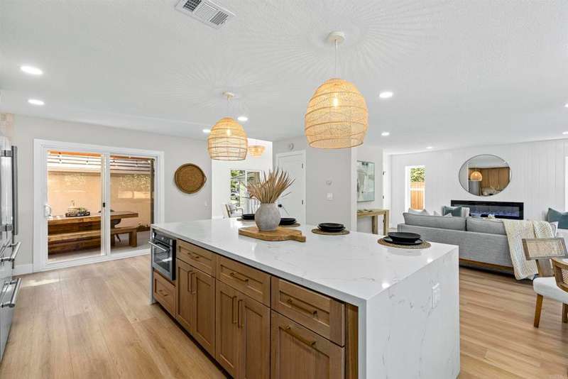 Welcome to this beautifully remodeled family home, ideally situated in a quiet cul-de-sac just steps from Torrey Pines High School, ranked among the best high schools in the United States. Located in one of San Diegos most sought-after neighborhoods, this residence offers the perfect blend of luxury, convenience, and lifestyle. Enjoy unparalleled access to Del Mar Highlands Town Center, Sky Deck, One Paseo, and world-class dining at Steak 48all within walking distance. Beaches, shopping, and major freeways are just minutes away, making it effortless to reach anywhere in San Diego. Inside, no detail has been overlooked in this top-to-bottom high-end remodel. The open-concept floor plan features cantina style doors that seamlessly connect indoor and outdoor living spaces, perfect for entertaining or relaxing in the coastal breeze. The chefs kitchen boasts a cantina style pass through window, Forno high-end stainless steel appliances, a massive quartz island with waterfall edges, and custom white oak cabinetry. The spacious primary suite includes vaulted ceiling, a walk-in closet and a spa-inspired bathroom. Every room has been thoughtfully upgraded with modern finishes, bringing style and comfort to every corner of the home. This home truly defines the San Diego lifestyleluxurious, convenient, and coastal. Dont miss this rare opportunity!