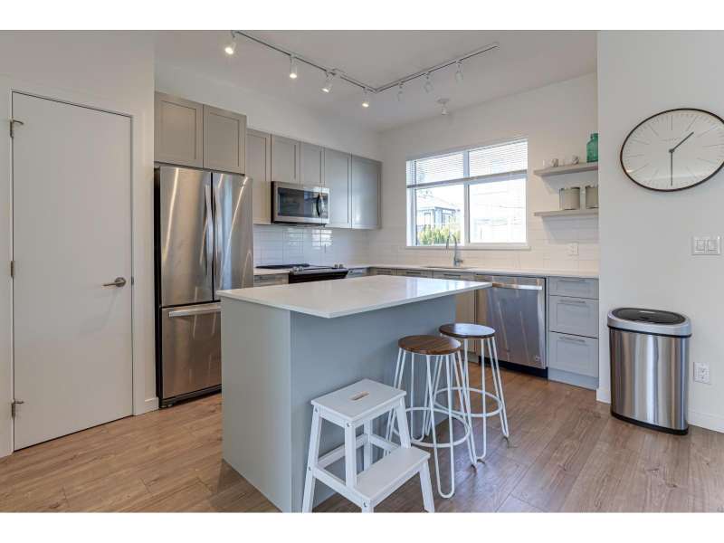 Welcome to Fleetwood Rise by Anthem! This spacious 1,492 sq ft 3 bed, 3 bath townhome is located in the front row facing the quiet Watson Dr, with no opposing units and additional street parking. Lots of privacy with no neighboring units directly across. Enjoy 9' ceilings, an open-concept layout, and a modern kitchen with S/S appliances, ample cabinetry, pantry, and access to a large patio-perfect for entertaining. The gated front yard boasts a sizable garden. Immaculately maintained by the original owners, this home features a true side-by-side 2-car garage. Just a 4-min walk to the future SkyTrain, top schools, shopping, dining, and Surrey Rec Centre. Openhouse Sat Aug 23, 2-4 pm (id:58403)