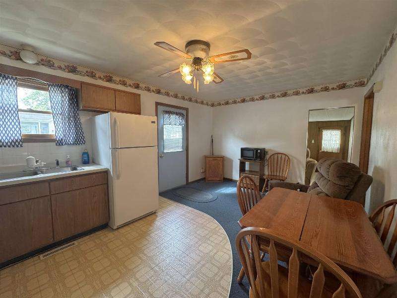 This simple 3-bedroom home is situated on a corner lot with an oversized 2-car garage. Generous space throughout the kitchen/dining area and living room, with one bedroom currently being utilized as a laundry room. The home has been well maintained over the years and is ready for occupancy.